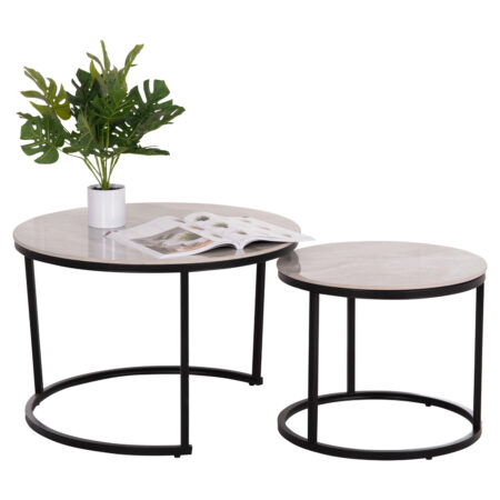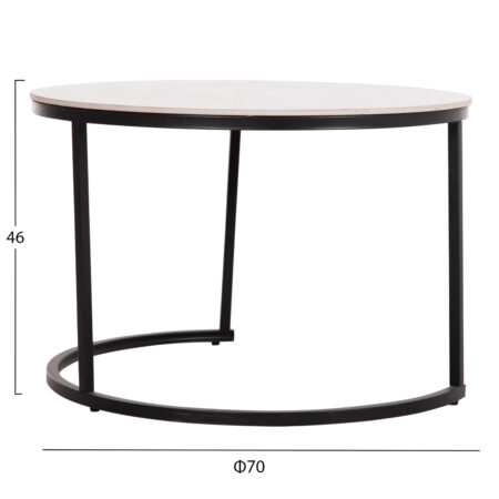 ΤΡΑΠΕΖΙA ΣΑΛΟΝΙΟΥ ΣΕΤ 2ΤΜΧ TALOS ΚΕΡΑΜΙΚΟ TOP ΜΕ ΟΨΗ ΛΕΥΚΟΥ ΜΑΡΜΑΡΟΥ HM18140.01 Φ70+Φ50
