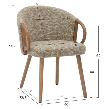 ΚΑΡΕΚΛΑ ΤΡΑΠΕΖΑΡΙΑΣ GALLEY HM9981.01 ΞΥΛΙΝΟΣ ΣΚΕΛΕΤΟΣ-ΜΠΕΖ ΥΦΑΣΜΑ 55,5x53,5x70Υεκ