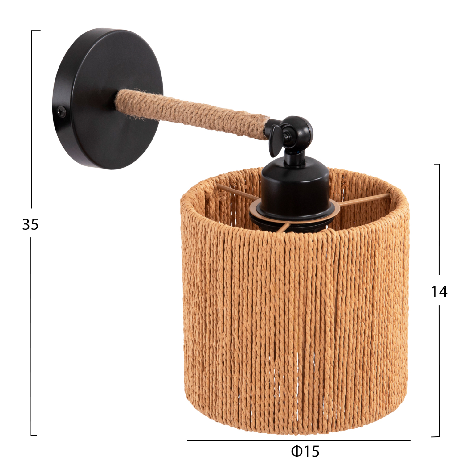 Η απλίκα τοίχου LANT είναι μια όμορφη πρόταση αλλά με αναφορές στο κλασικό κρεμαστό σχέδιο. Το καπέλο του φωτιστικού είναι κυλινδρικό με επένδυση σχοινιού κάνναβης που αφήνει το φως να διαχέεται απαλά δημιουργώντας μια ατμόσφαιρα μοναδική, ενώ ο βραχίονας είναι ρυθμιζόμενος με περιστροφική «πεταλούδα» (βίδα).