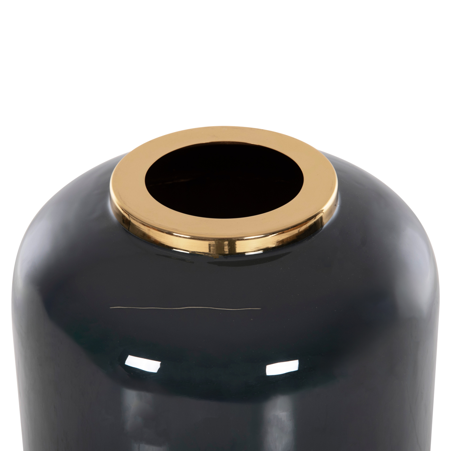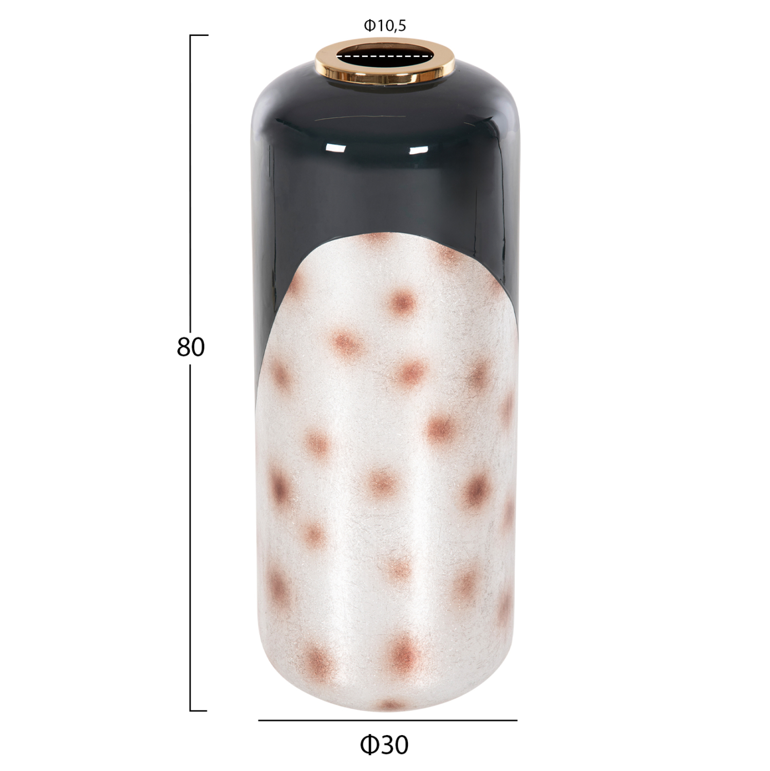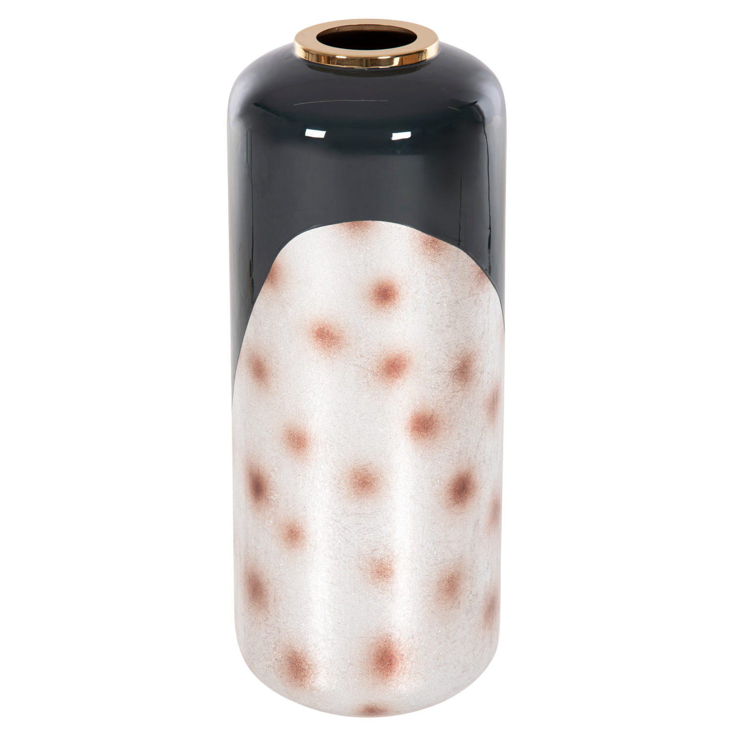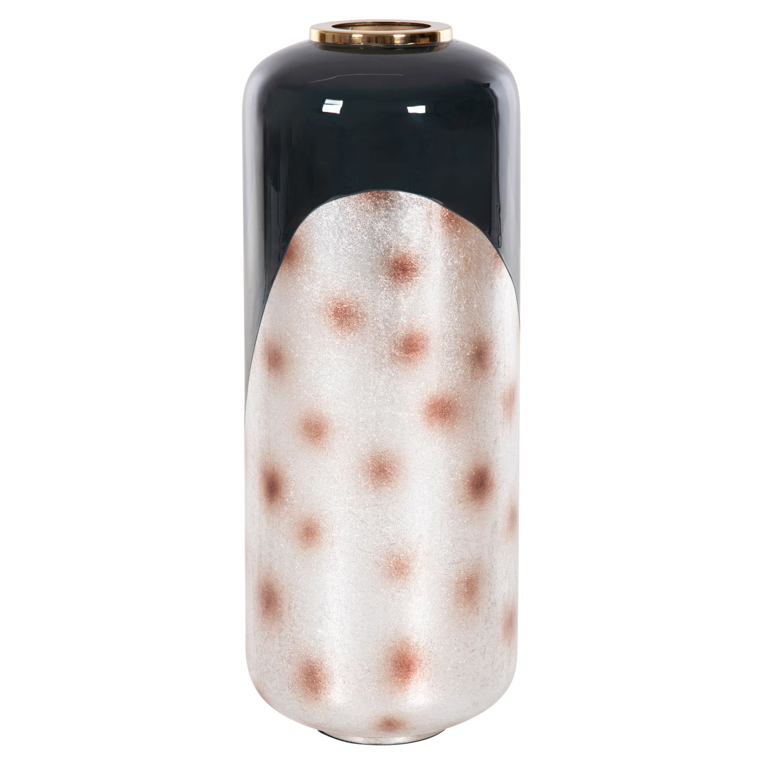 Το ψηλό κι επιβλητικό διακοσμητικό βάζο δαπέδου RAKSASA είναι εξολοκλήρου μεταλλικό και θα αποτελέσει σημείο αναφοράς είτε στο σπίτι, είτε σε επαγγελματικούς χώρους. Το χρώμα του είναι ΜΠΛΕ ΑΝΘΡΑΚΙ και ΑΣΗΜΙ με θολό κόκκινο πουά.