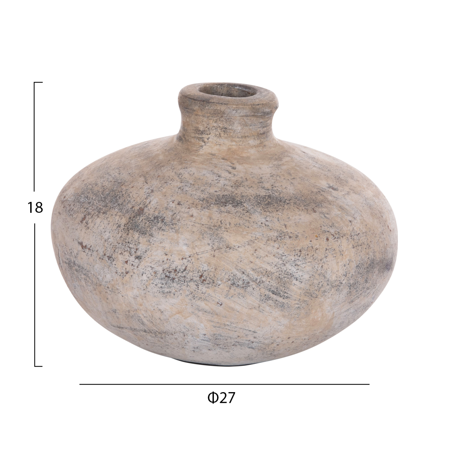 Το διακοσμητικό βάζο VERMO είναι χαμηλό και φαρδύ με μικρό στόμιο. Είναι σε παλαιωμένο (brushed) ΕΚΡΟΥ χρώμα και μπορεί να ταιριάξει οπουδήποτε το θελήσετε. Είτε στο σπίτι είτε σε επαγγελματικούς χώρους.