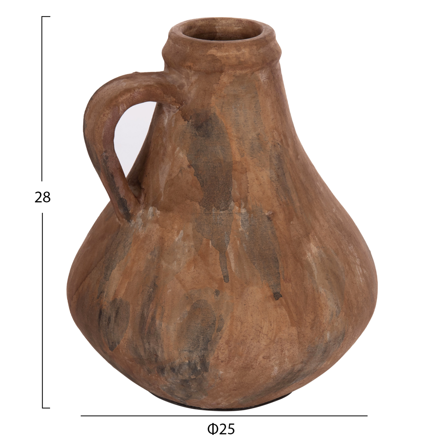 Το διακοσμητικό βάζο VERMO είναι σχετικά χαμηλό και φαρδύ με μεσαίο στόμιο ενώ διαθέτει και χερούλι. Είναι σε παλαιωμένο (brushed) ΚΑΦΕ χρώμα και μπορεί να ταιριάξει οπουδήποτε το θελήσετε. Είτε στο σπίτι είτε σε επαγγελματικούς χώρους.
