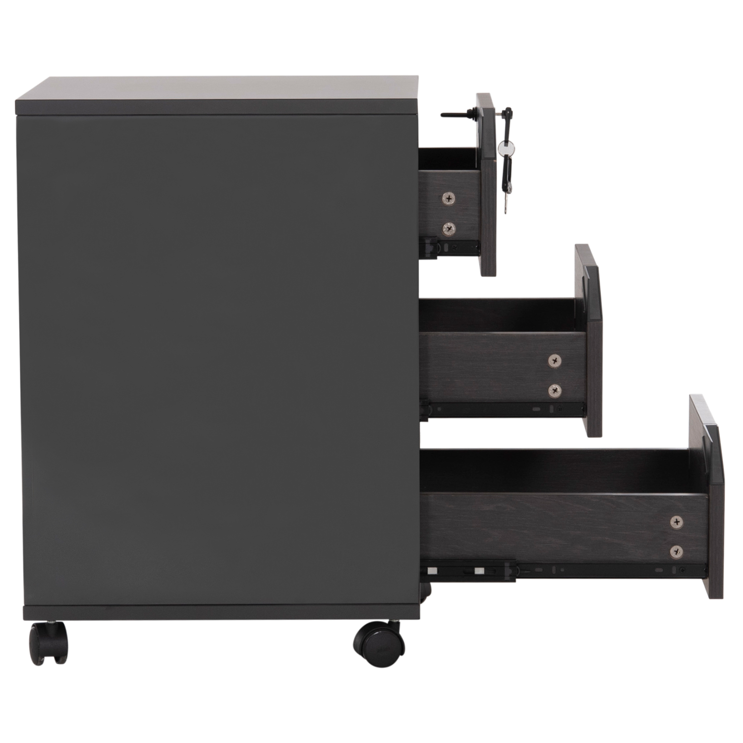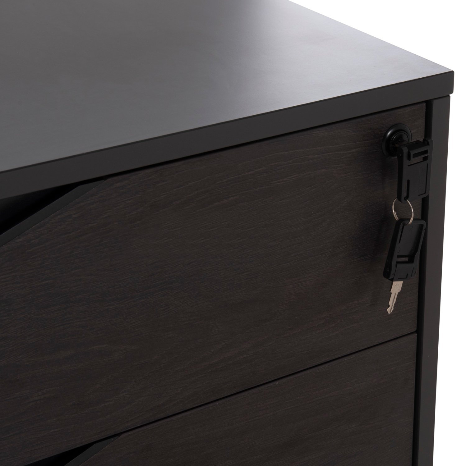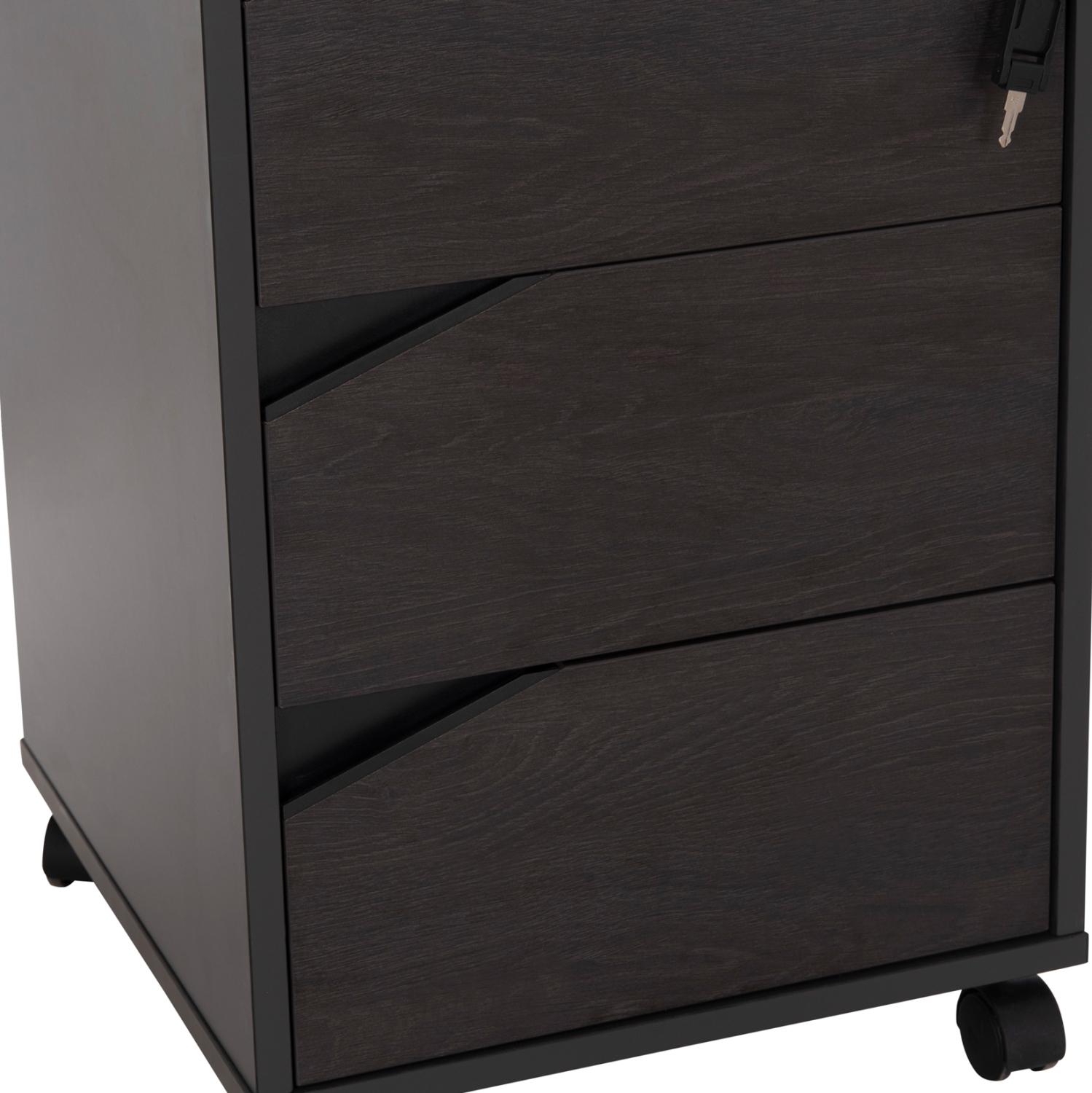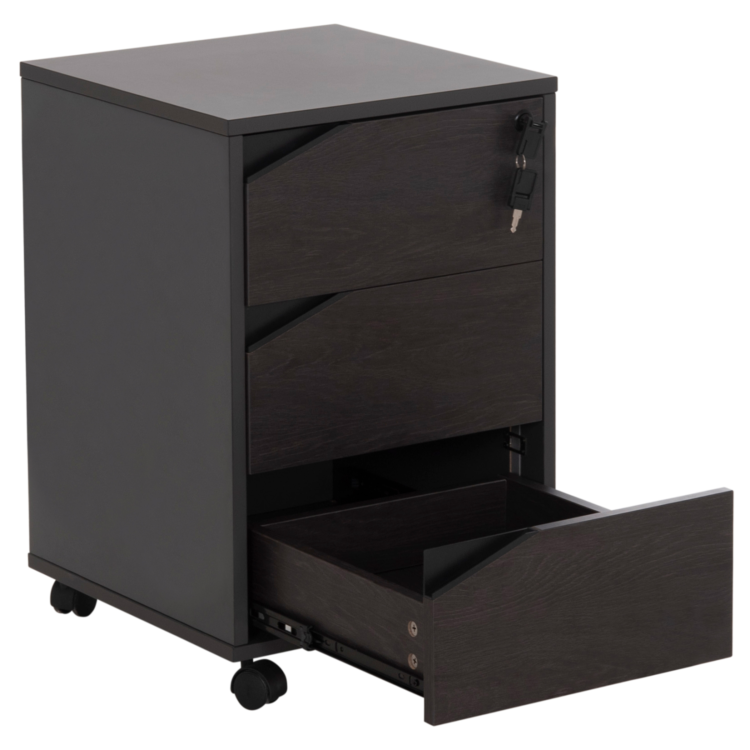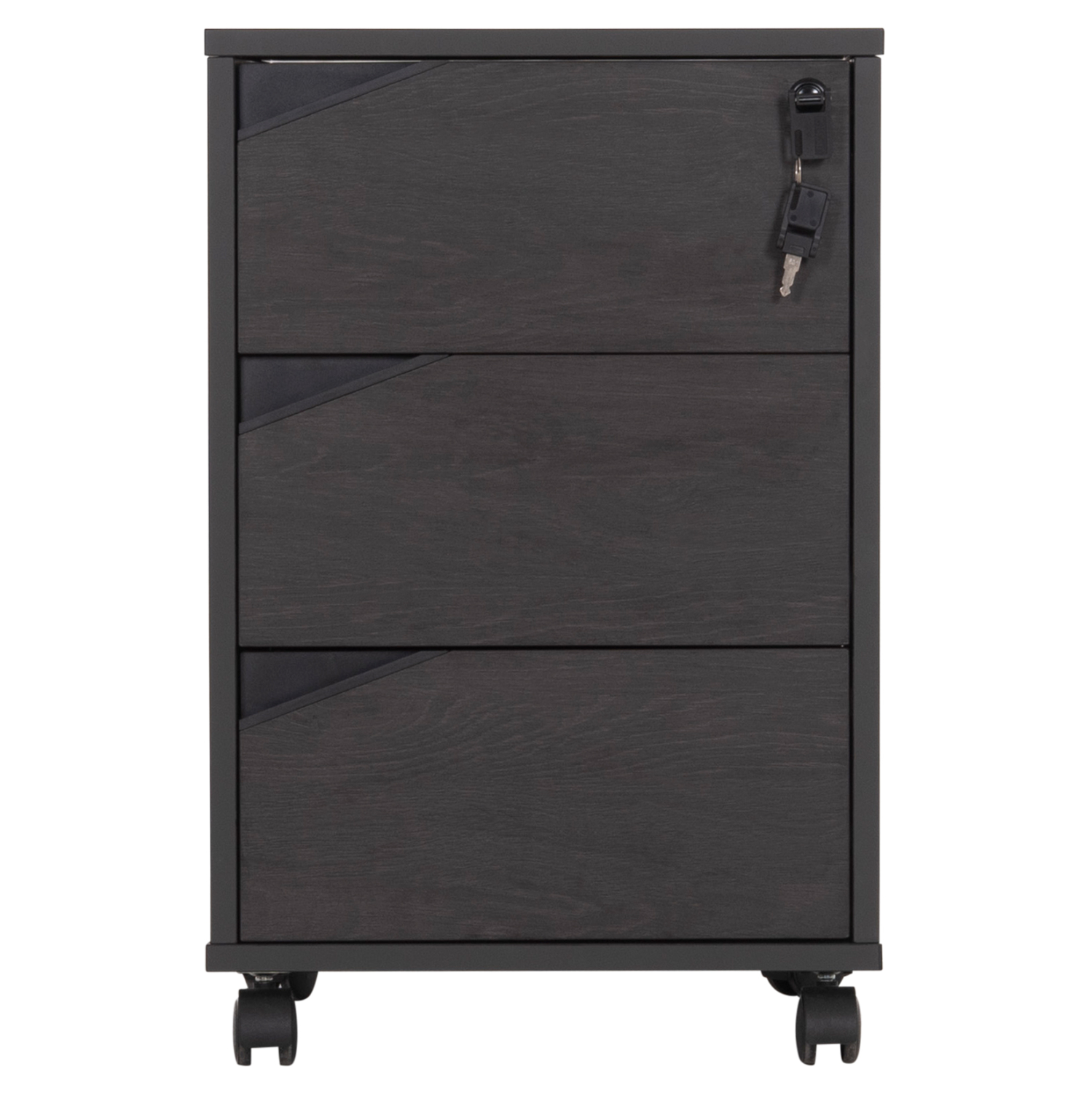 Τροχήλατη συρταριέρα γραφείου από μελαμίνη σε γκρι και βέγγε απόχρωση, με κλειδαριά, σε μοντέρνο design.