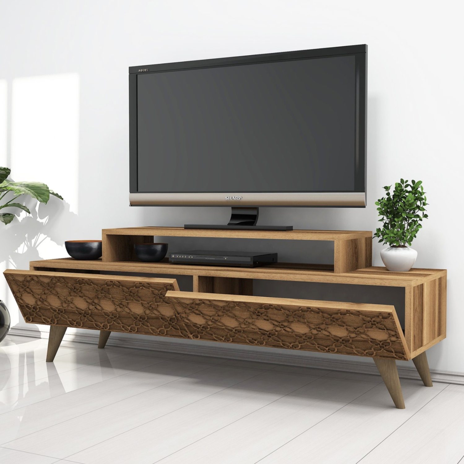 Αυτό το έπιπλο τηλεόρασης είναι όμορφο και φυσικά πρακτικό. Μπορεί να συνδυαστεί με πολλά στυλ διακόσμησης χάρη στα σκούρα χρώματά της. Επίσης, μπορεί να στερεωθεί στον τοίχο για ακόμα μεγαλύτερη σταθερότητα. Μια ιδανική πρόταση για το σπίτι με τιμή που δεν θα σας αφήσει να κοιτάξετε αλλού!