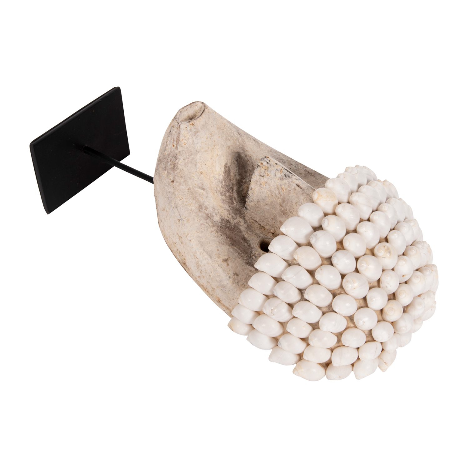 Το επιτραπέζιο διακοσμητικό ΗΜ4314 θα δώσει μια άλλη «οπτική» στον χώρο σας. Πρόκειται για ένα μακρόστενο ξύλινο προσωπείο σε WHITEWASH απόχρωση, τοποθετημένο σε ένα ΜΑΥΡΟ μεταλλικό stand. Το χαρακτηριστικό αυτού του διακοσμητικού είναι τα ΛΕΥΚΑ κοχύλια που κοσμούν το προσωπείο.