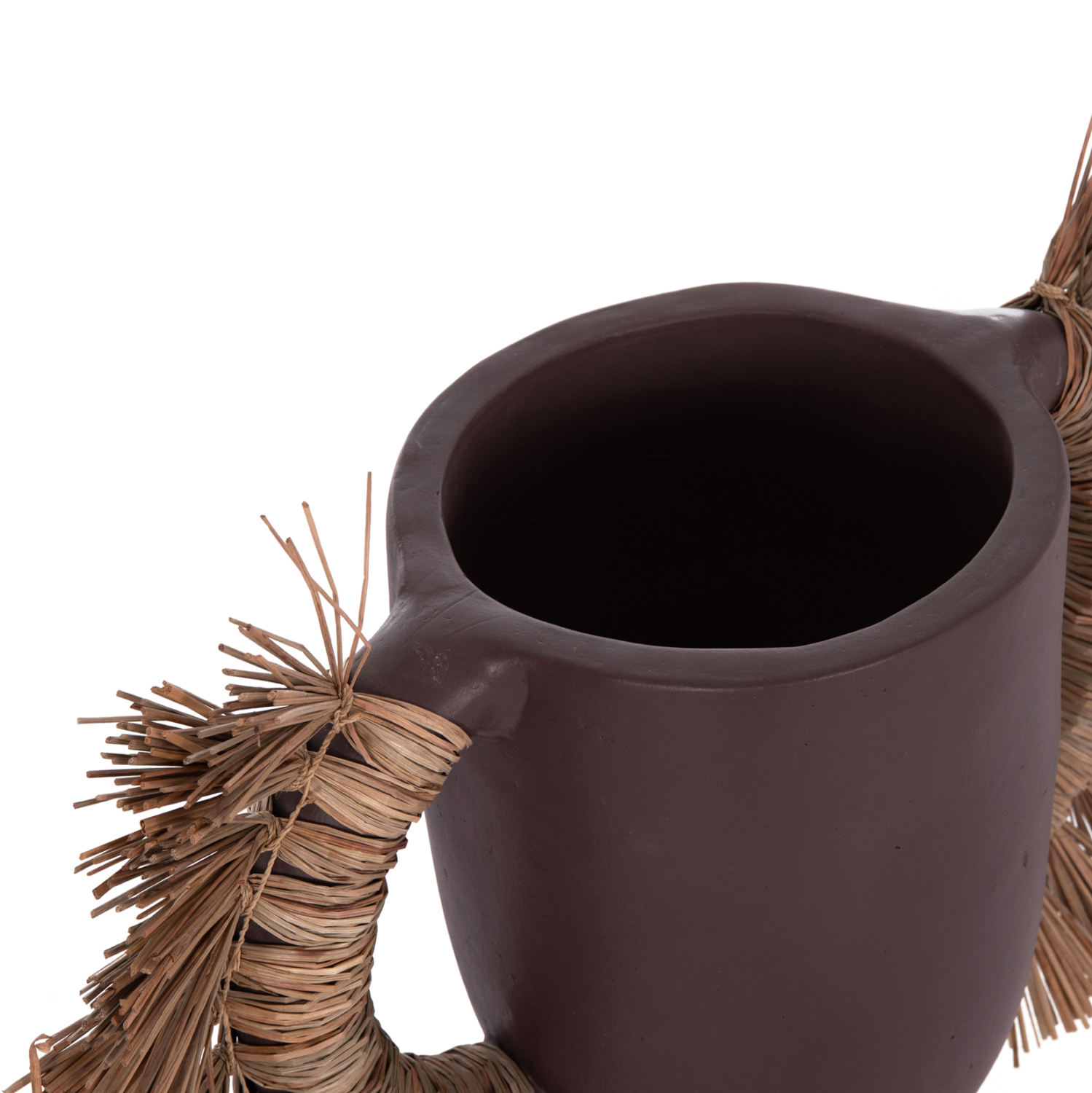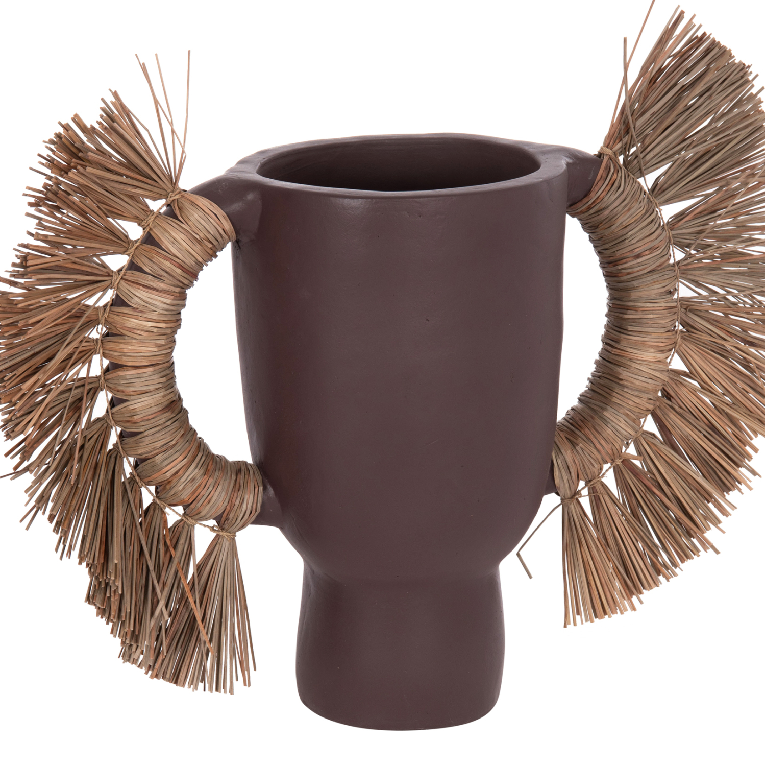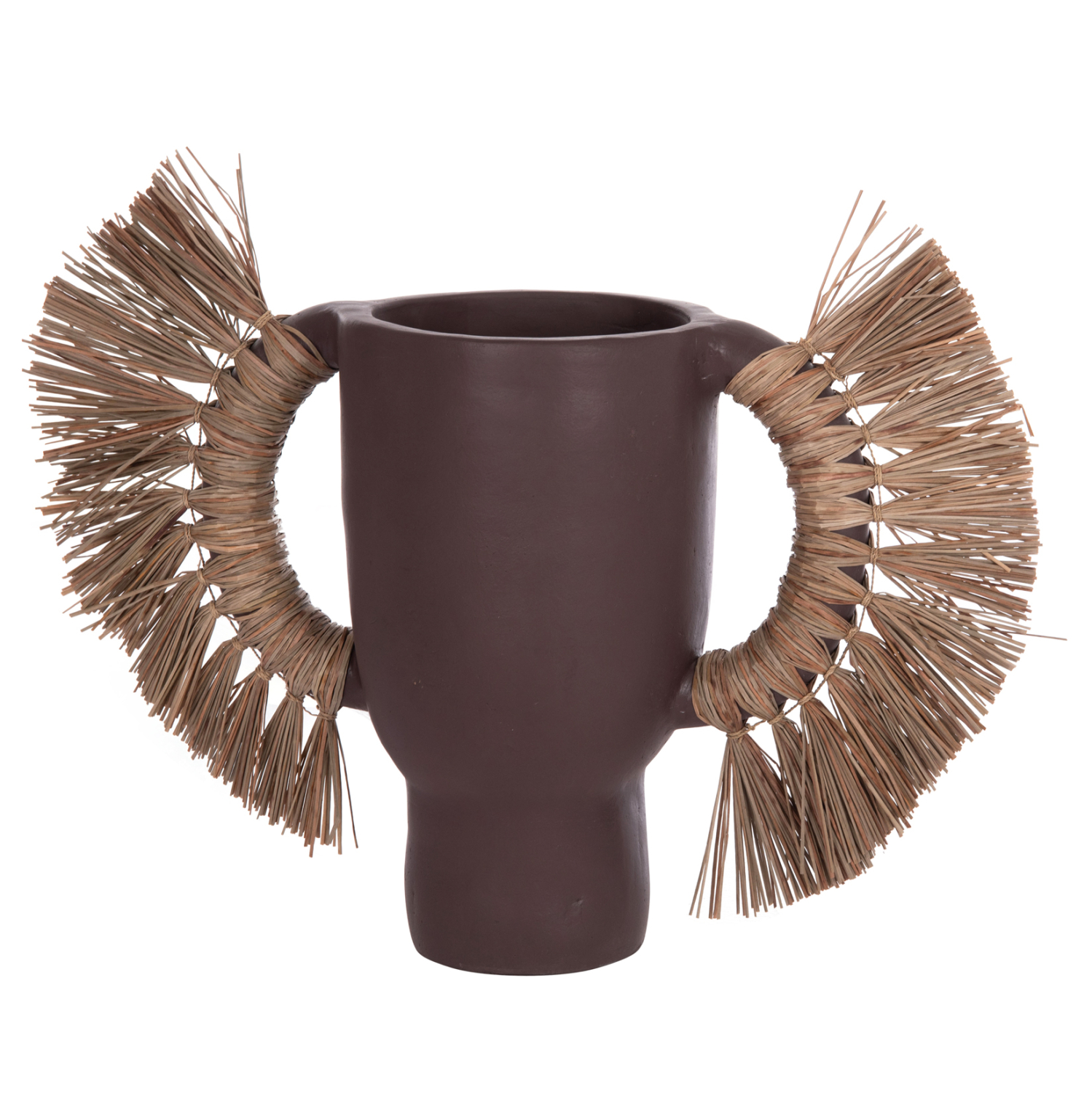 Το επιτραπέζιο χειροποίητο διακοσμητικό βάζο ALICA είναι ένα πολύ ιδιαίτερο διακοσμητικό στοιχείο για κάθε χώρο. Είναι κατασκευασμένο εξολοκλήρου από τερακότα σε ΣΟΚΟΛΑΤΙ χρώμα, ενώ διαθέτει και δύο χερούλια επενδυμένα με αποξηραμένο grass, και ένα φαρδύ στόμιο.