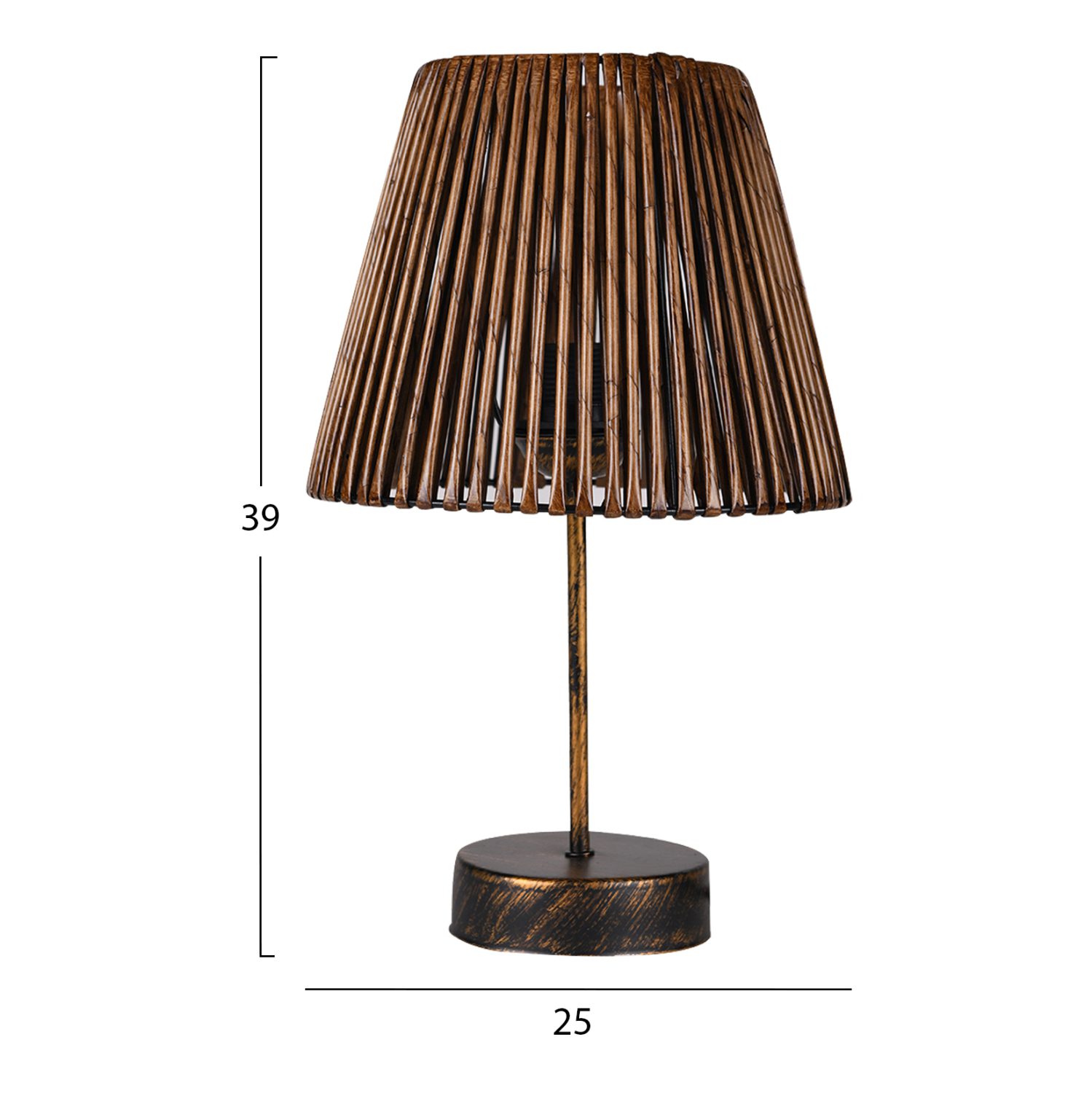 Επιτραπέζιο φωτιστικό, σε μπρονζέ απόχρωση με bamboo καπέλο σε καρυδί απόχρωση.