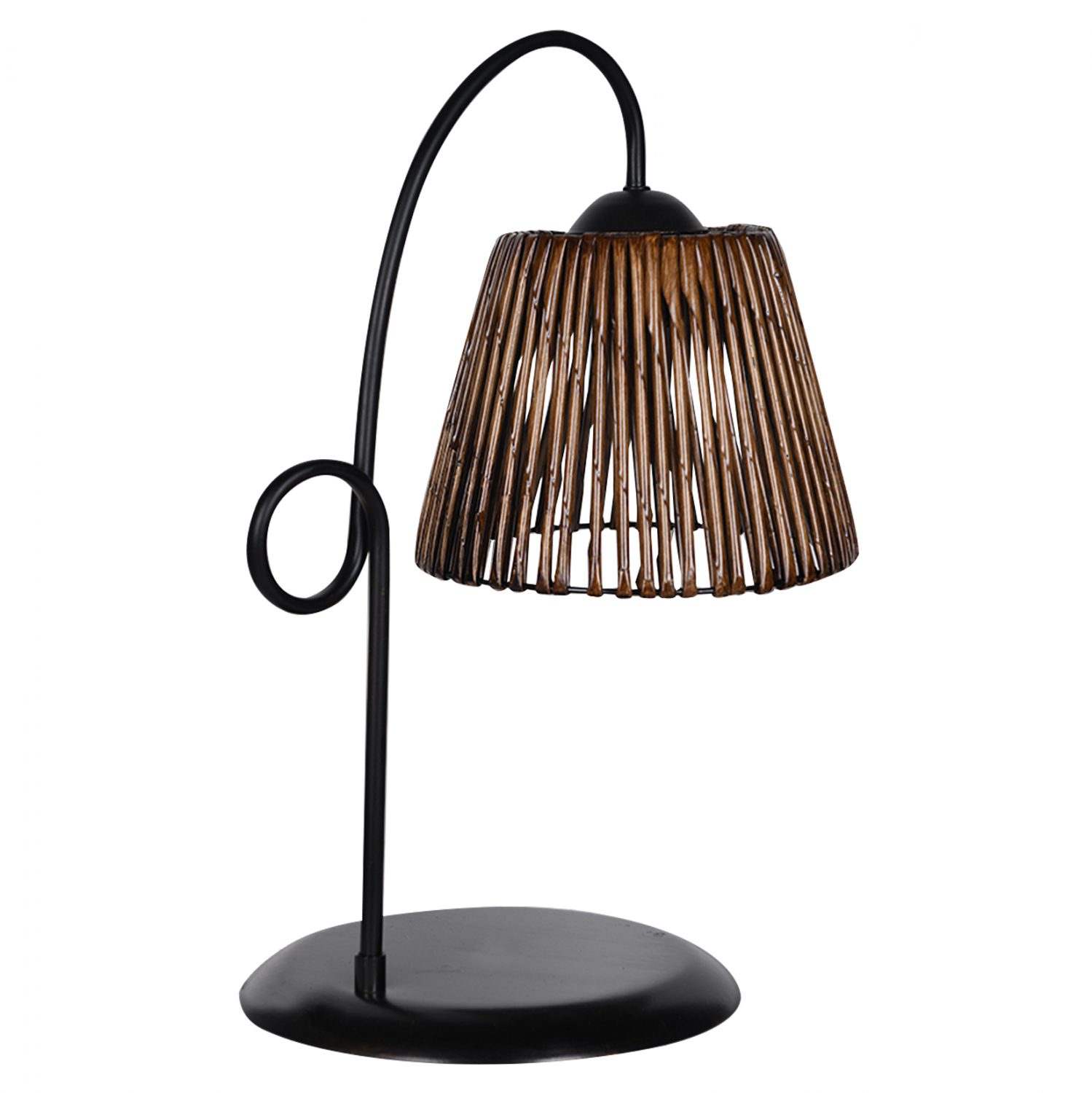 Επιτραπέζιο φωτιστικό, σε μαύρη απόχρωση με bamboo καπέλο σε καρυδί απόχρωση.