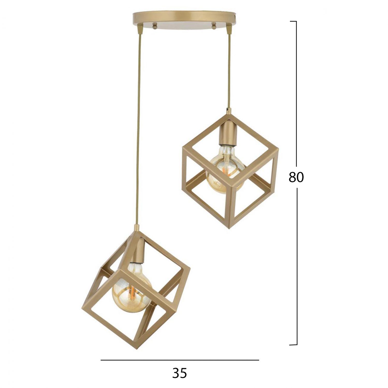 Φωτιστικό οροφής, δίφωτο, σε χρυσή απόχρωση και σχήμα κύβου.