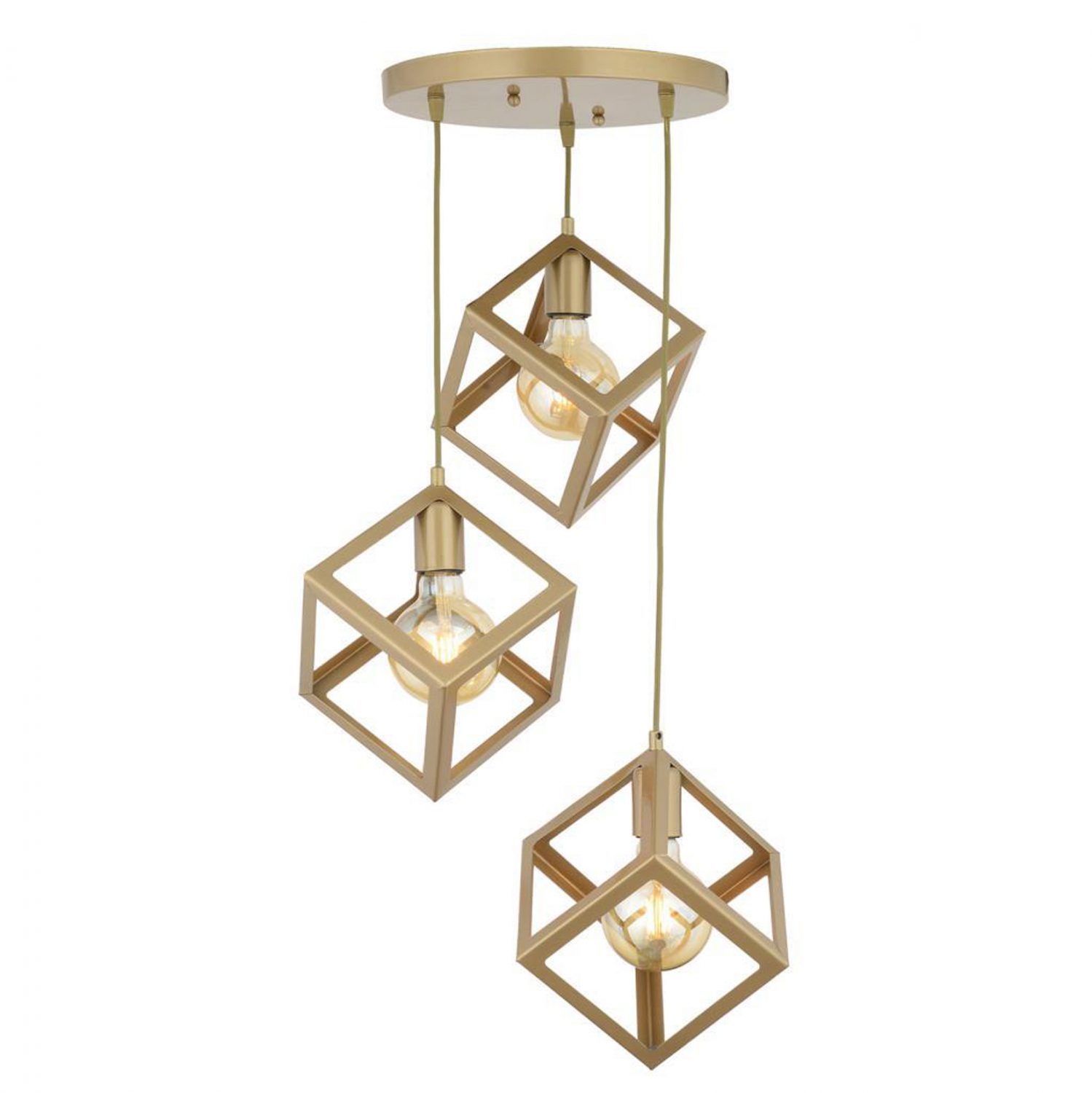 Φωτιστικό οροφής, τρίφωτο, σε χρυσή απόχρωση και σχήμα κύβου.