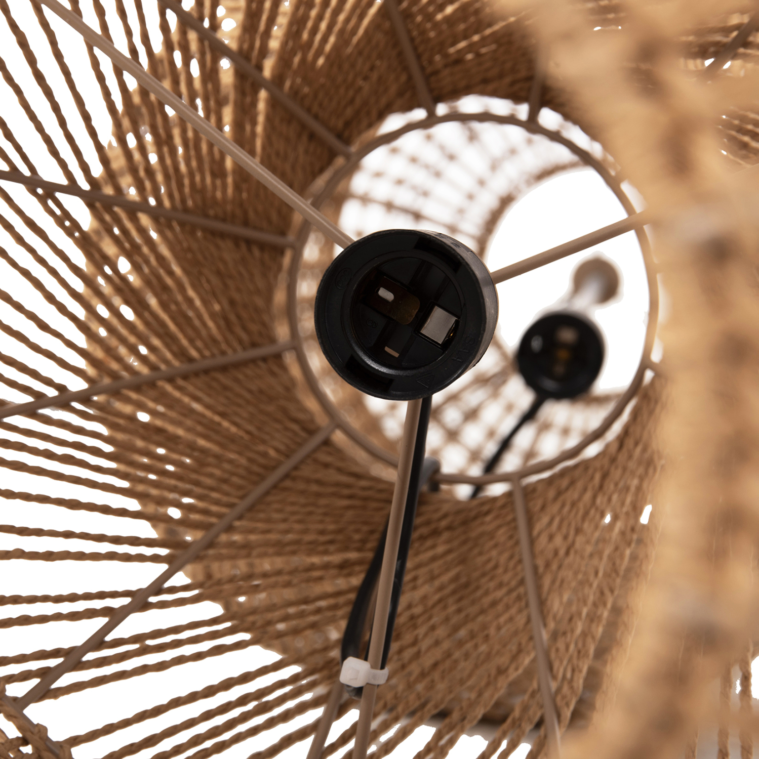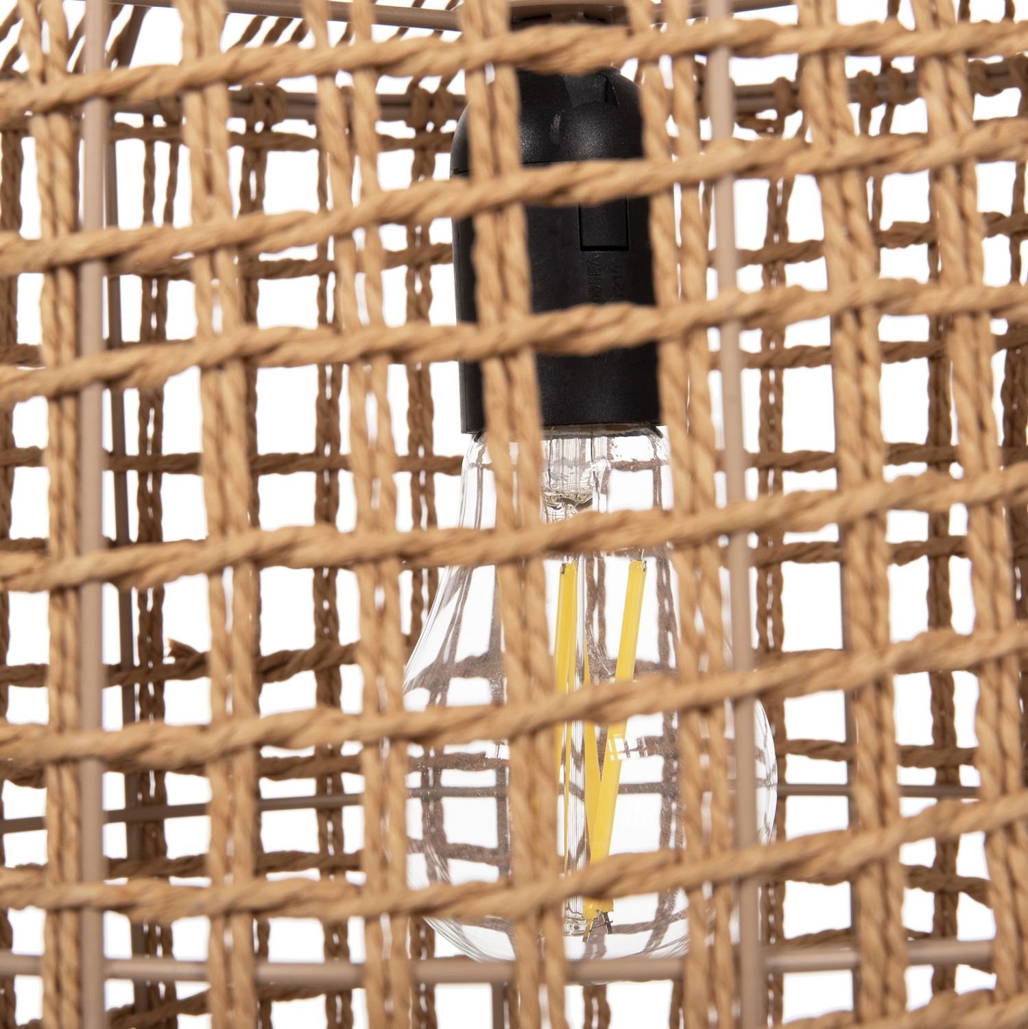 Ανακαλύψτε αυτή την νέα προσθήκη στην γκάμα των φωτιστικών μας. Πρόκειται για ένα επιβλητικό κρεμαστό φωτιστικό οροφής σε σχήμα κυλίνδρου που δέχεται 2 λάμπες σε κατακόρυφη διάταξη. Ο σκελετός είναι μεταλλικός αλλά αυτό που κυριαρχεί είναι η επένδυση με paper rope εξαιρετικής ποιότητας σε χρώμα ΜΠΕΖ της άμμου. Ένα όμορφο φωτιστικό που διαχέει το φως προς κάθε κατεύθυνση και δημιουργεί την ατμόσφαιρα που πάντα φανταζόσασταν για τον χώρο σας.
