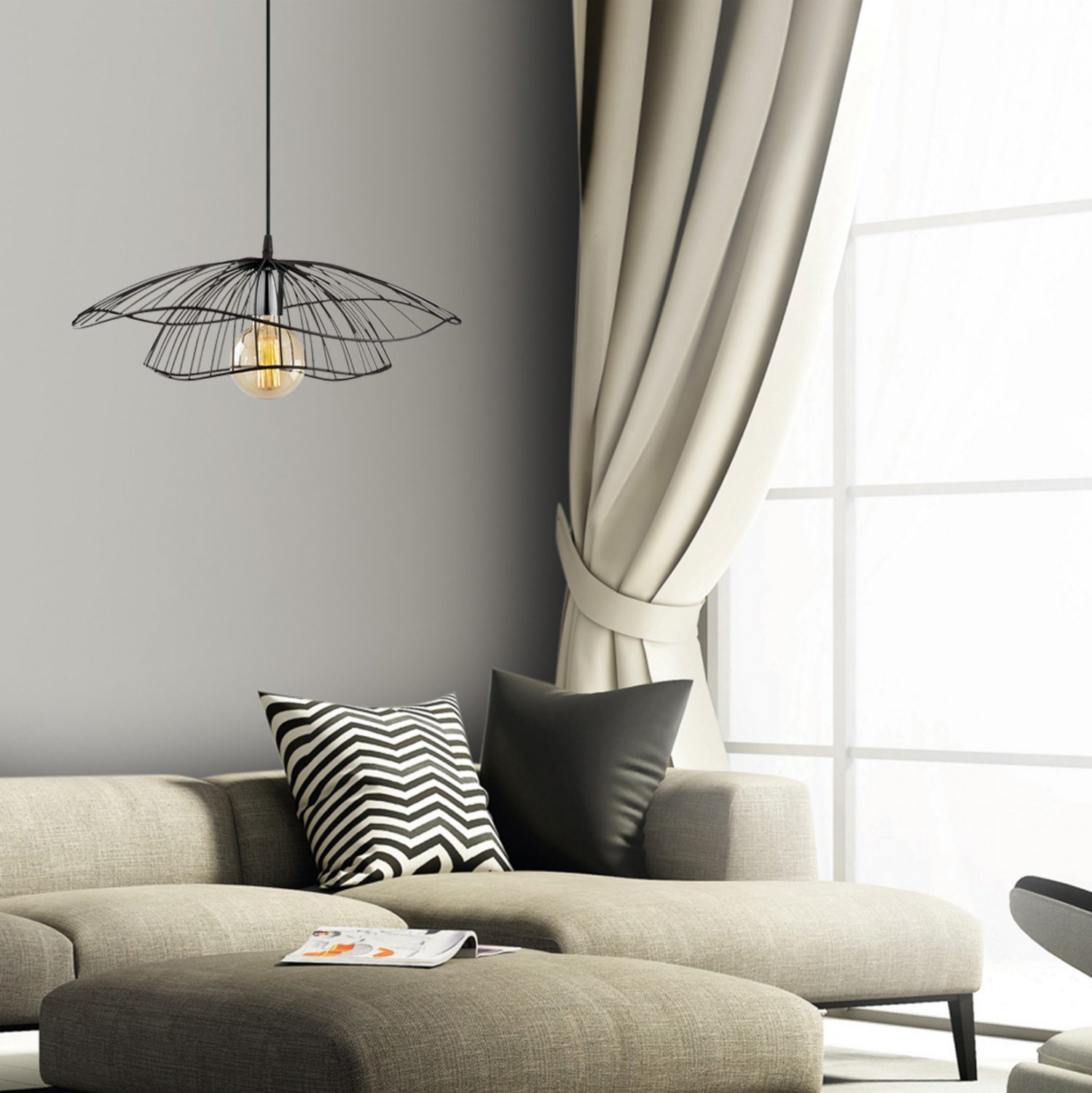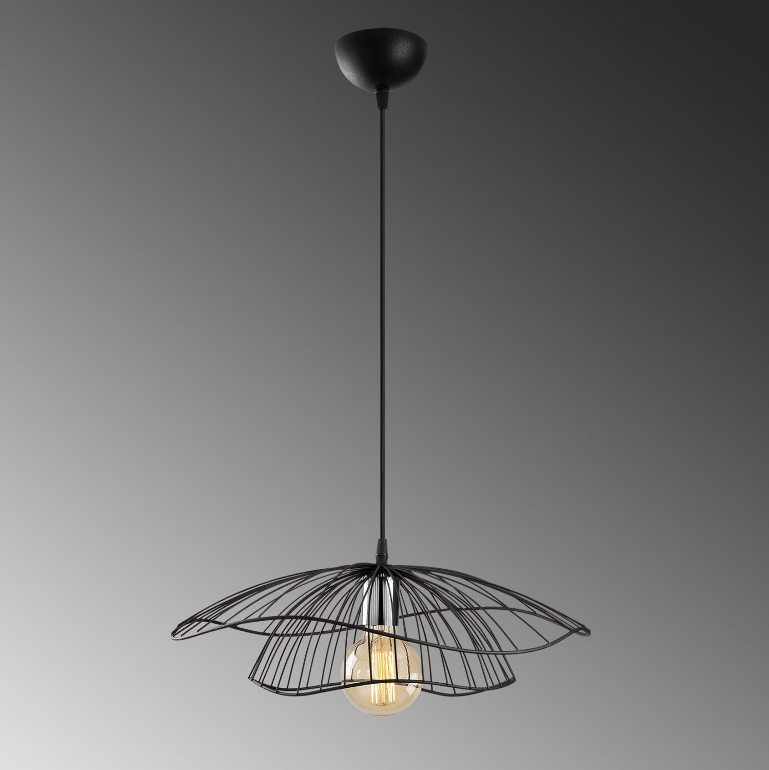 Μοντέρνο κρεμαστό φωτιστικό οροφής, μονόφωτο μεταλλικό σε μαύρη απόχρωση.