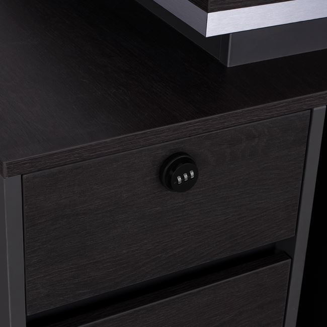 Επαγγελματικό γραφείο με ντουλάπι στην αριστερή πλευρά, κατασκευασμένο από μελαμίνη υψηλής ποιότητας, σε γκρι και βέγγε απόχρωση.
