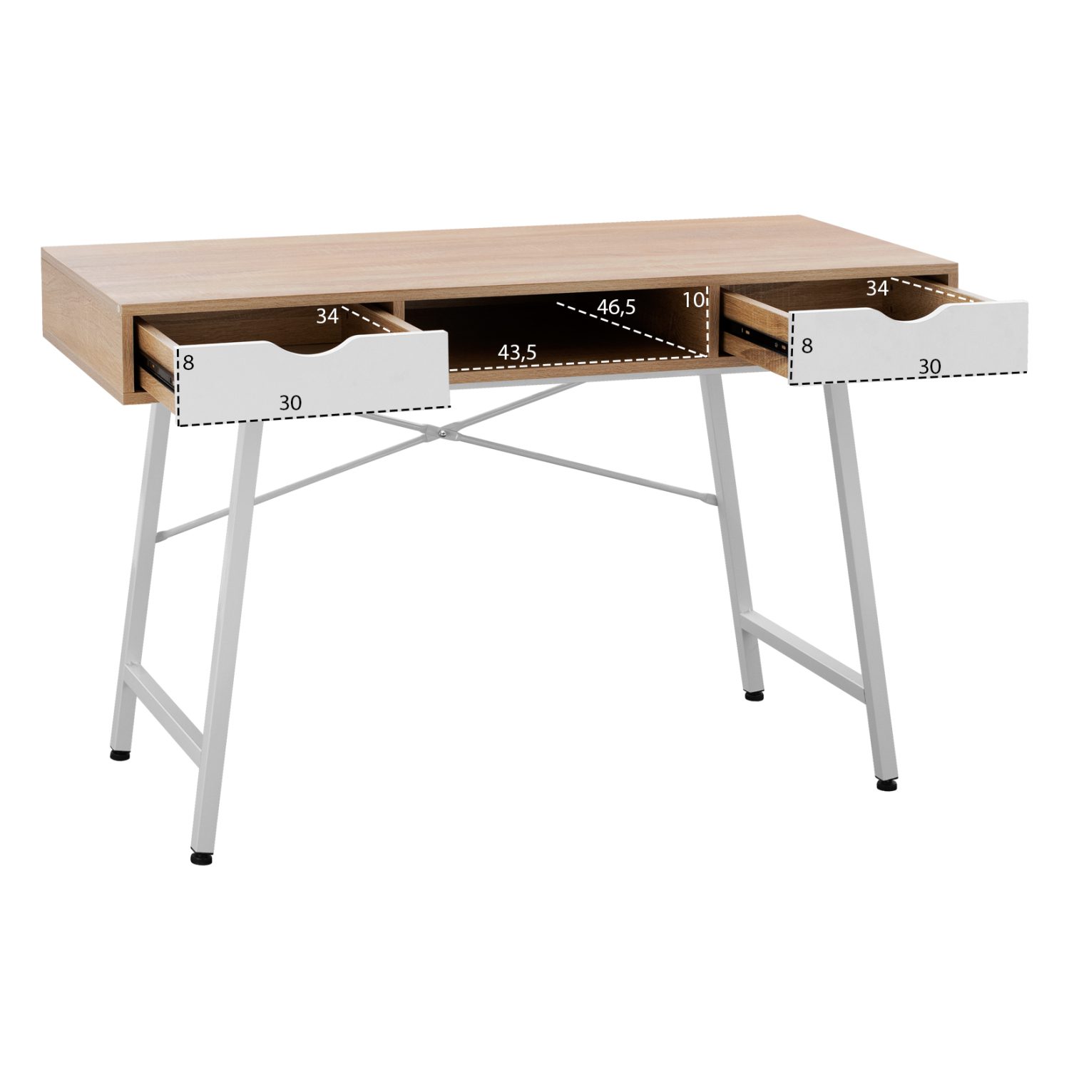 Το ΗΜ2128.01 είναι λιτό και διαθέτει δύο συρτάρια σε λευκό χρώμα (ένα δεξιά κι ένα αριστερά) και έναν ανοιχτό αποθηκευτικό χώρο ανάμεσα στα συρτάρια.