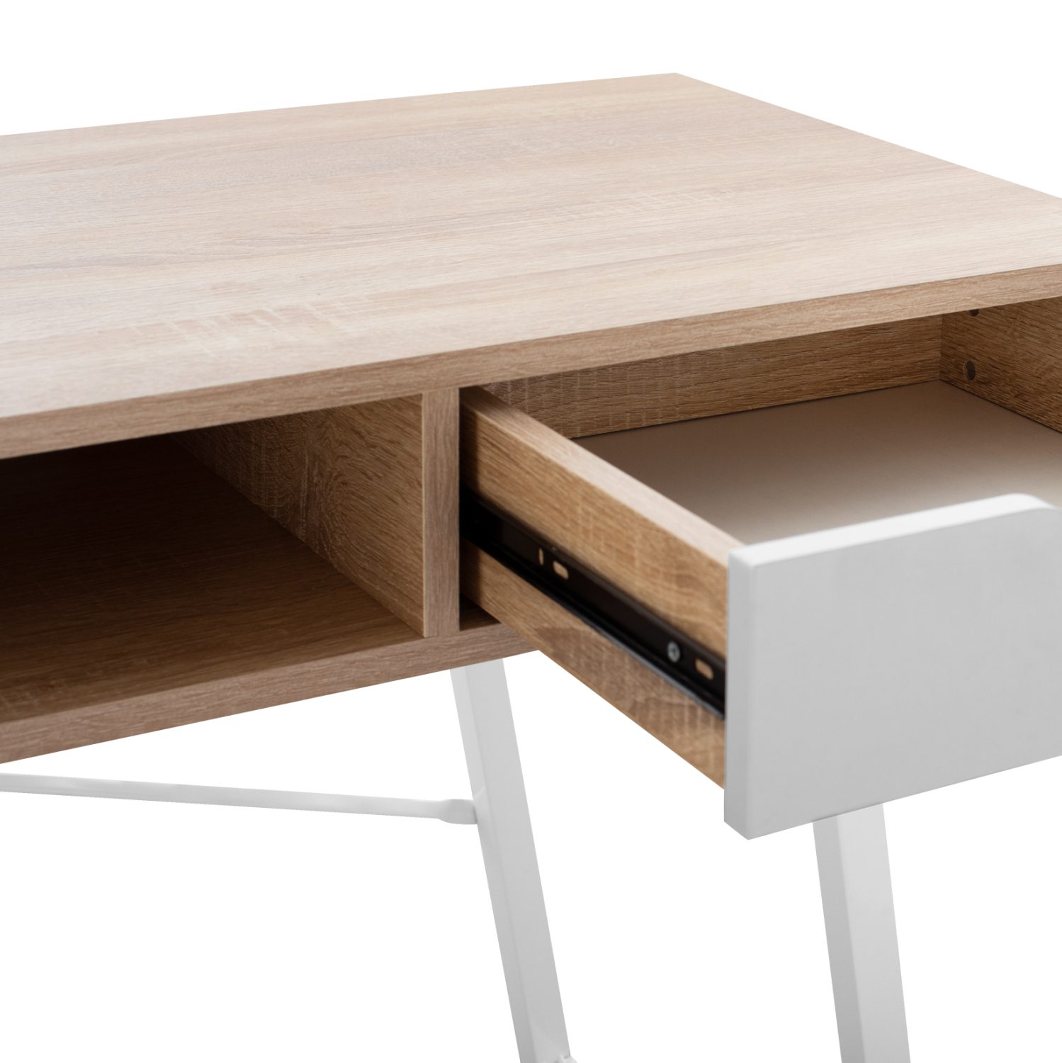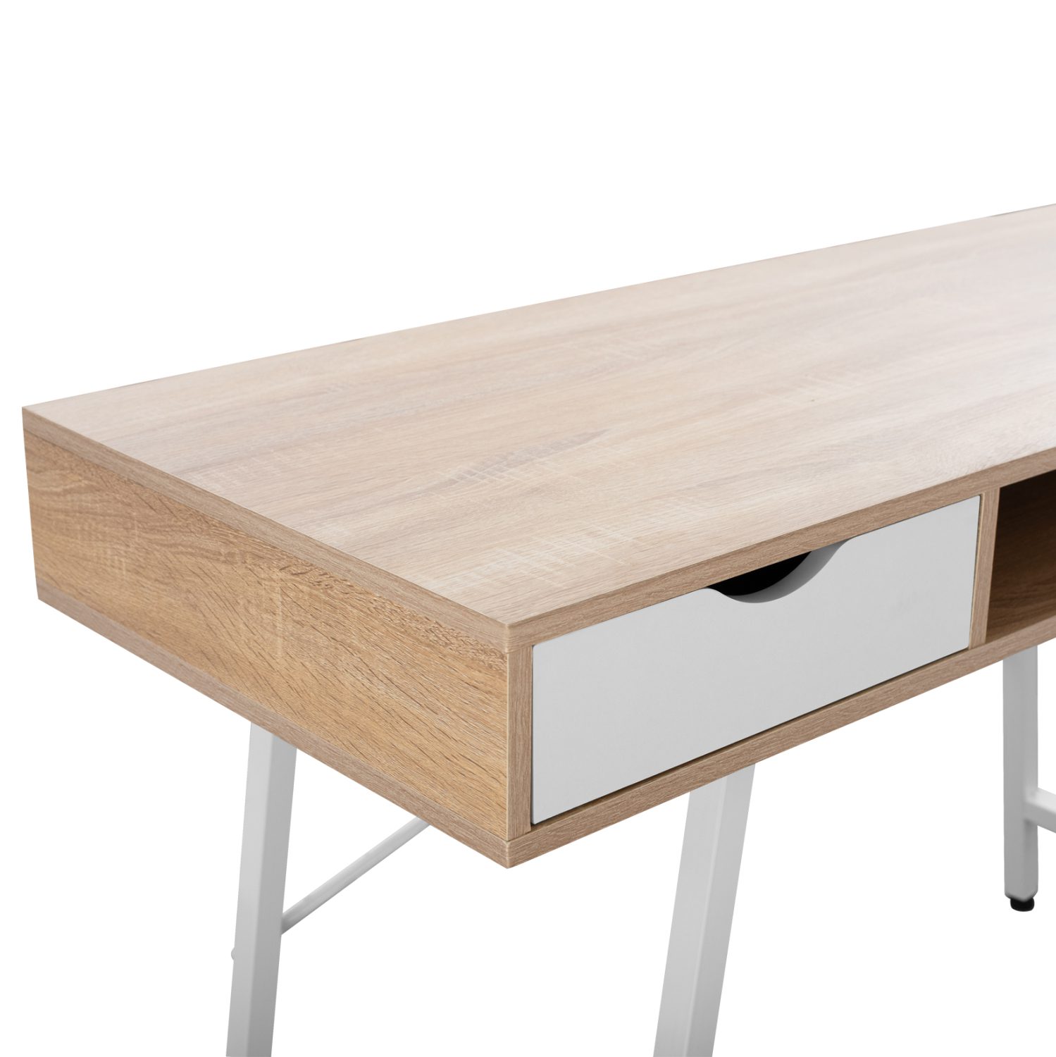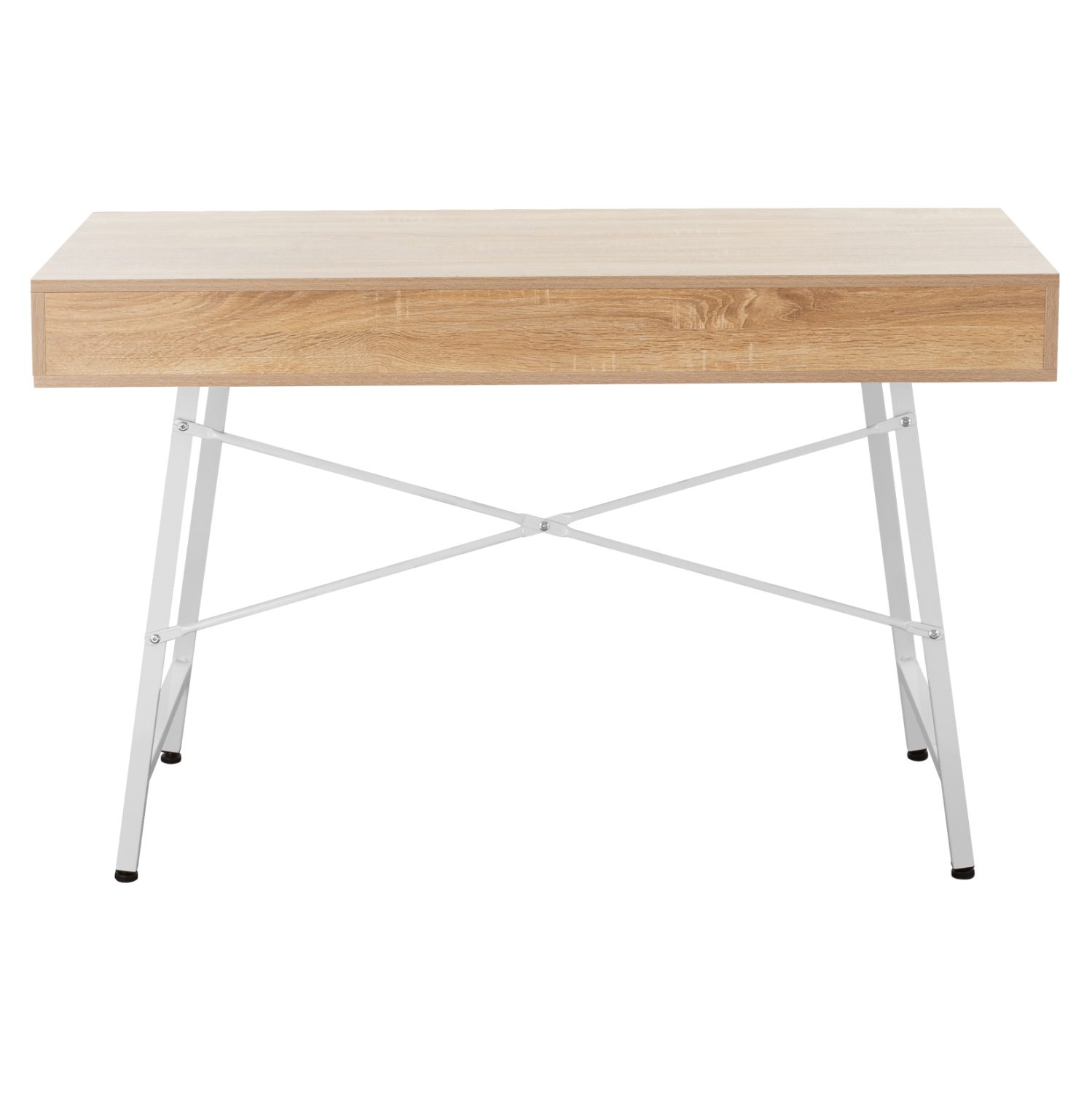 Ο σκελετός με τα πόδια του γραφείου είναι μεταλλικός, με πλαστικές τάπες στο κάτω μέρος των ποδιών για προστασία των δαπέδων και του ίδιου του σκελετού.