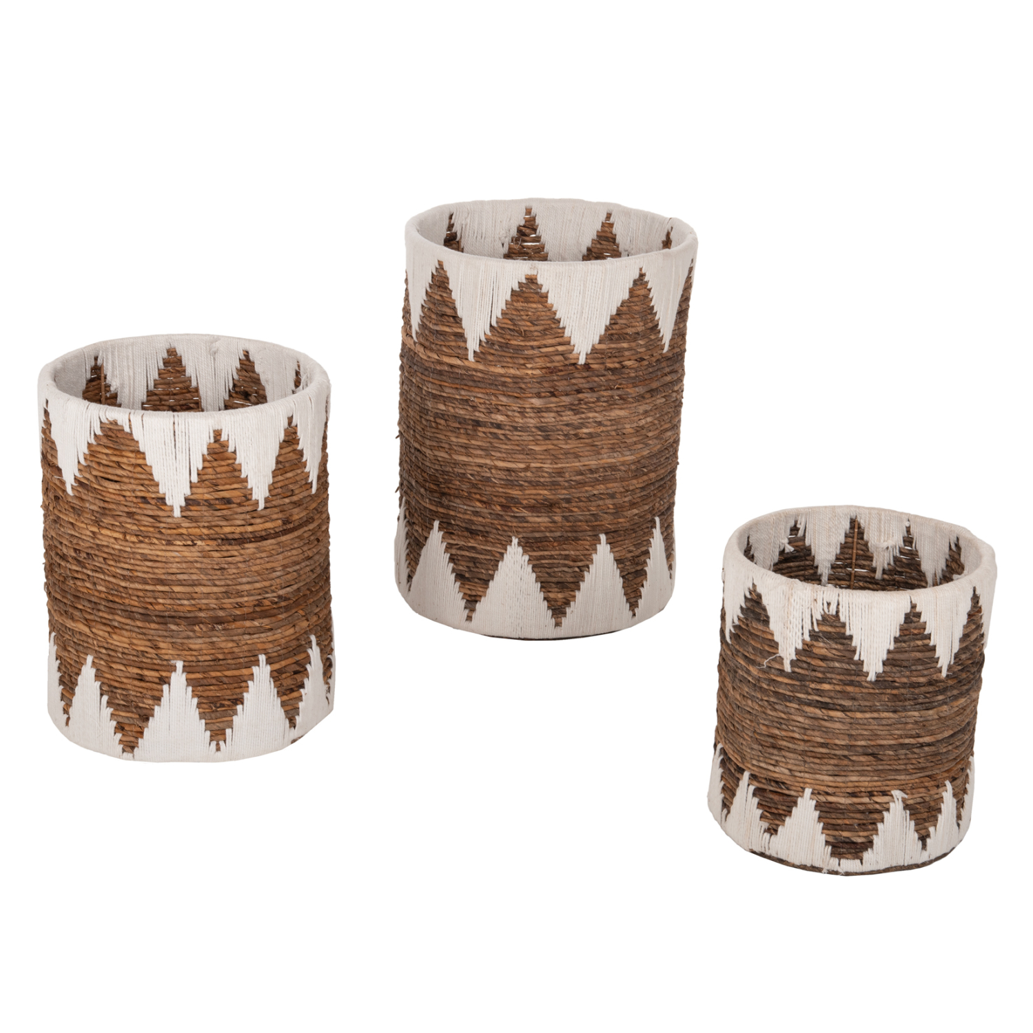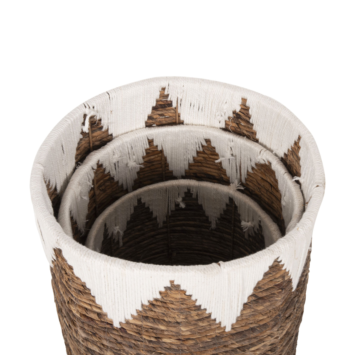 Το σετ 3 καλαθιών δαπέδου HM4307 αποτελείται από 3 στρογγυλά καλάθια σε διαφορετικά μεγέθη. Δεν διαθέτουν καπάκι και μπορείτε να τα χρησιμοποιήσετε με διάφορους τρόπους, ενώ είναι κατασκευασμένα από ψάθα σε φυσικό και λευκό χρώμα, αριστοτεχνικά πλεγμένο.