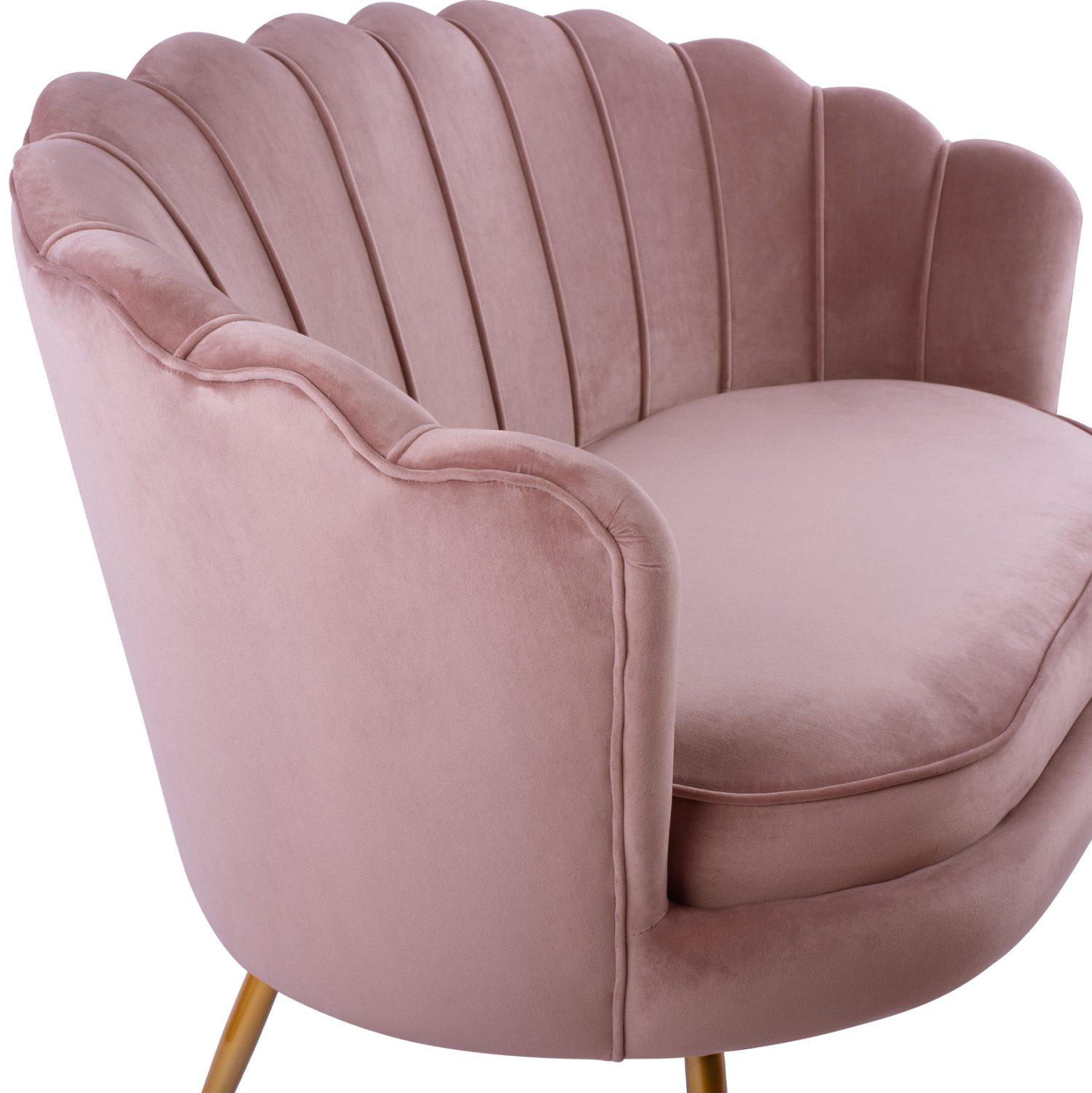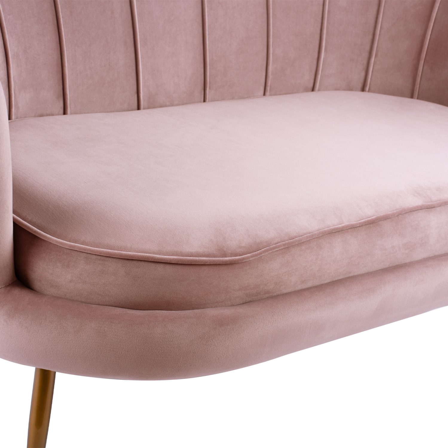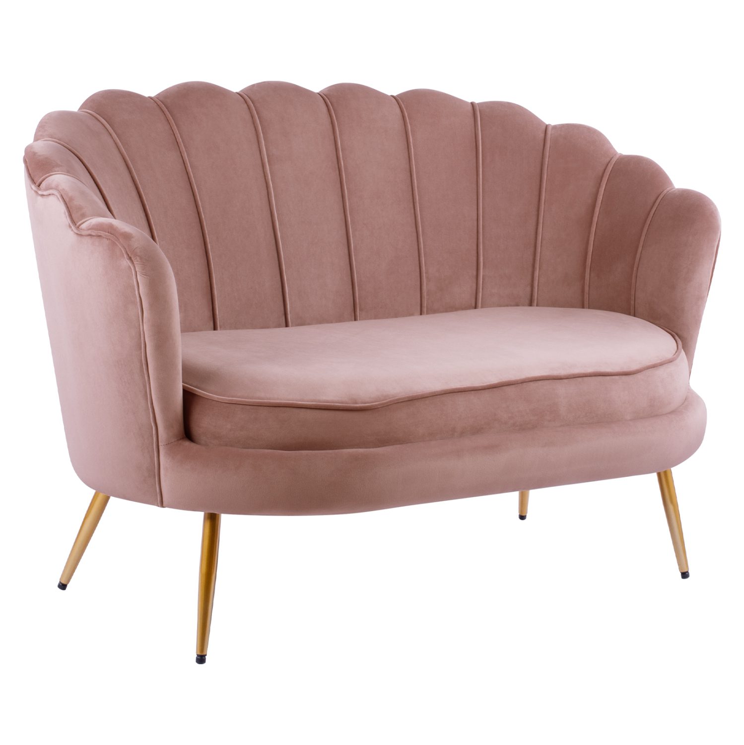 Καναπές διθέσιος COQUILLE από βελούδο σε απόχρωση σάπιου μήλου με μεταλλικά πόδια σε χρυσή απόχρωση.