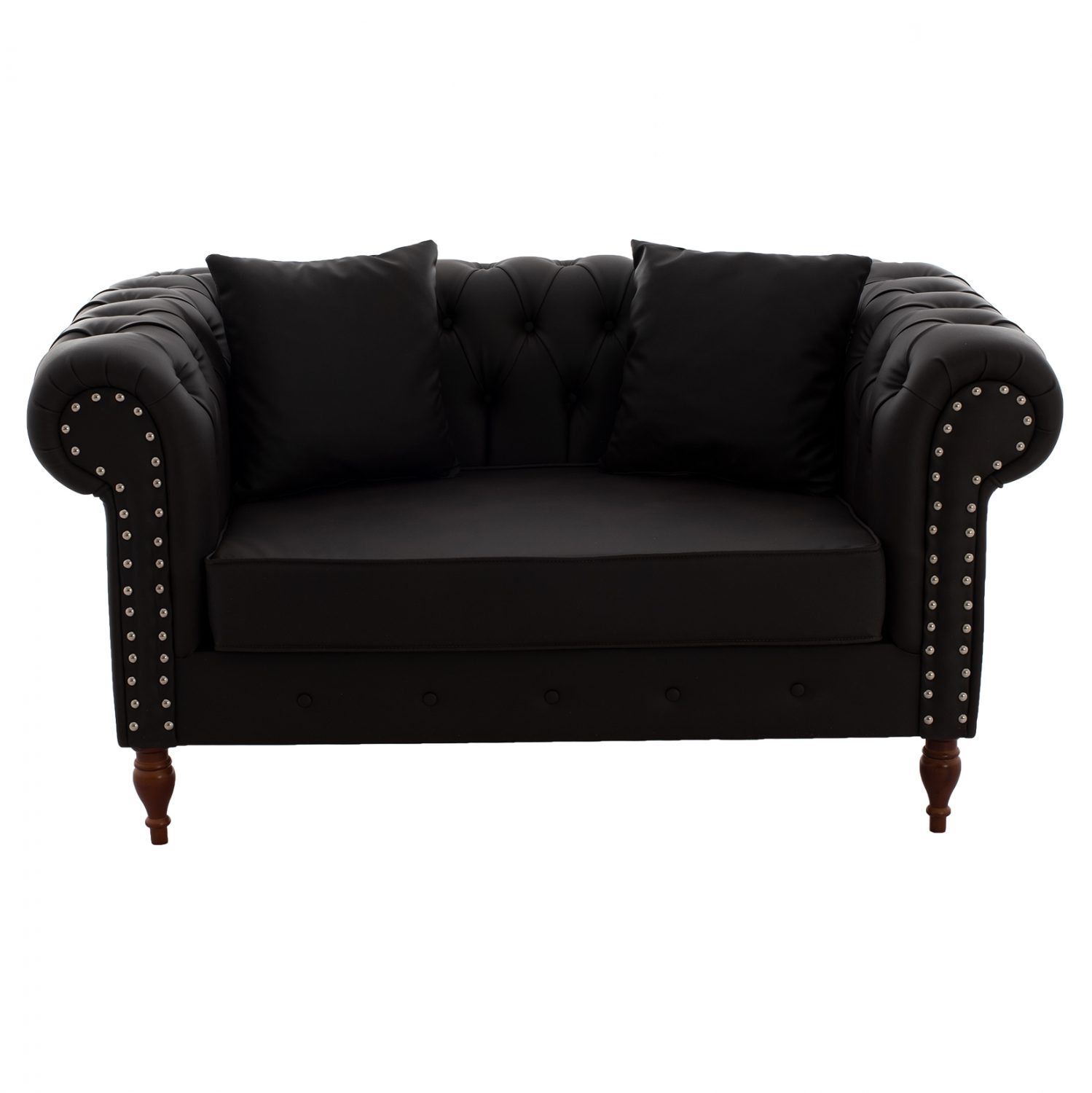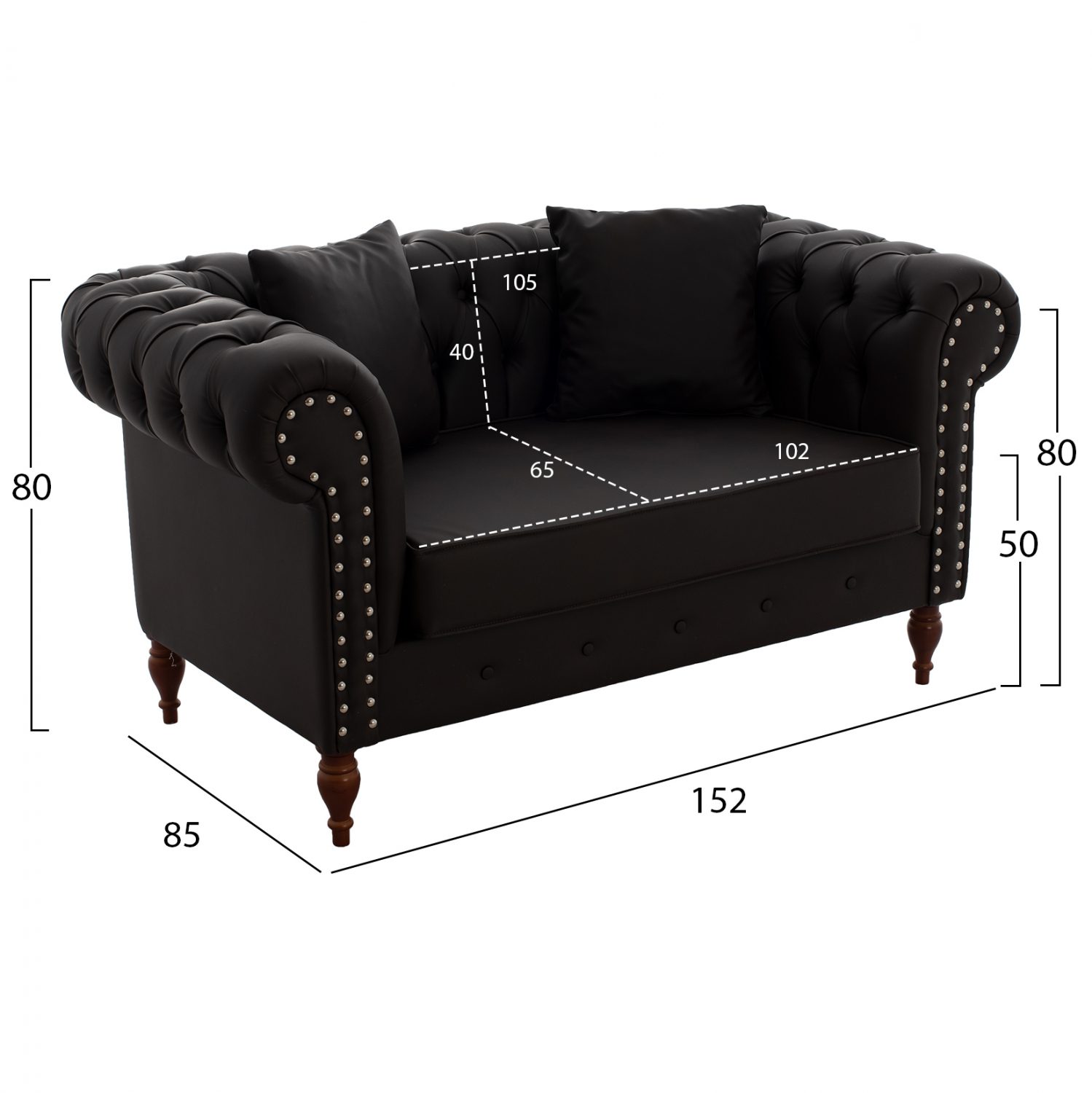 Καναπές διθέσιος τύπου Chesterfield, με τεχνόδερμα καφέ 152x85x80 εκ.