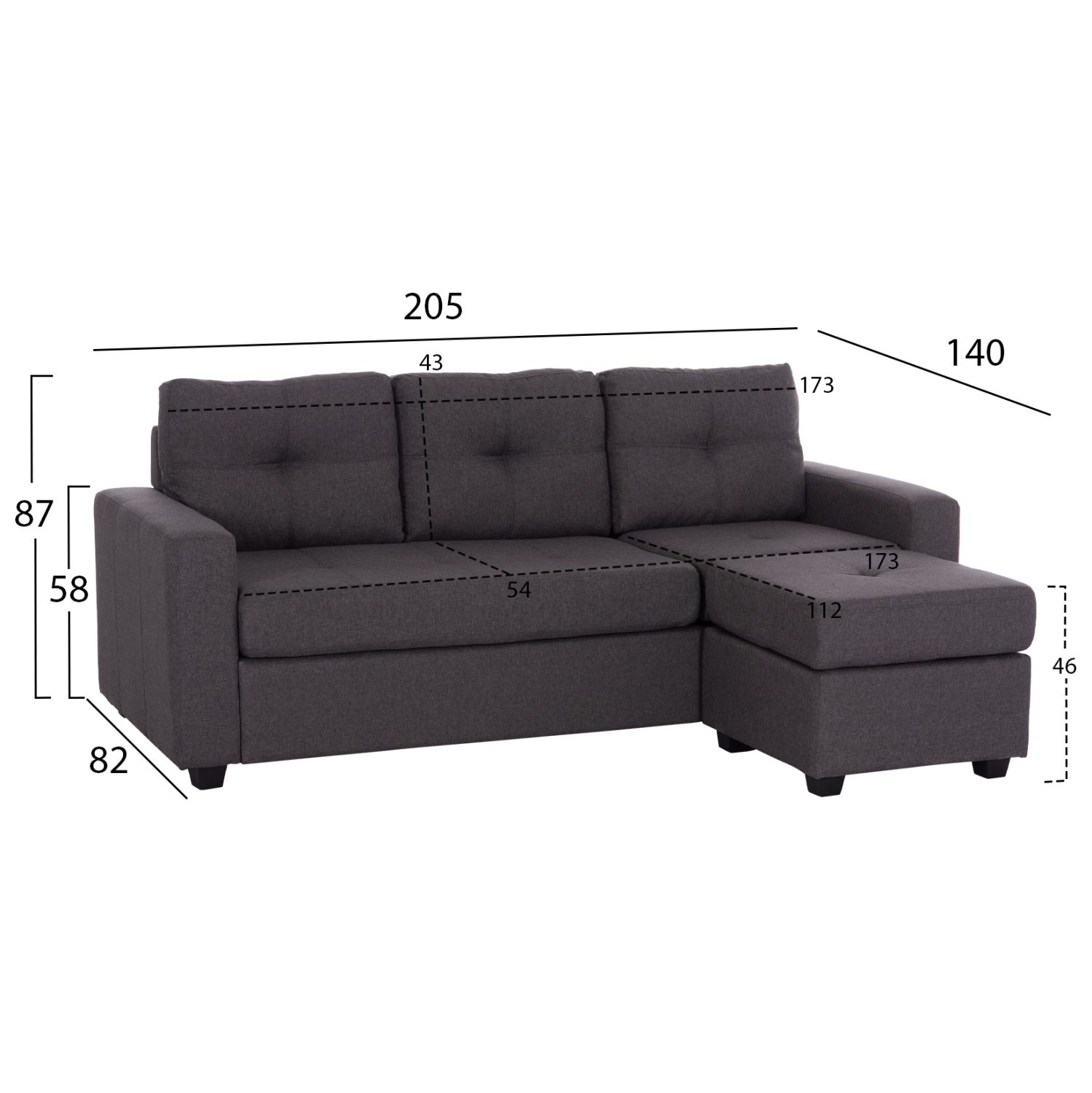 ΚΑΝΑΠΕΣ ΑΝΑΣΤΡΕΨΙΜΗ ΓΩΝΙΑ HM3004.02 ΜΕ ΓΚΡΙ ΥΦΑΣΜΑ 205X140X87Y εκ.