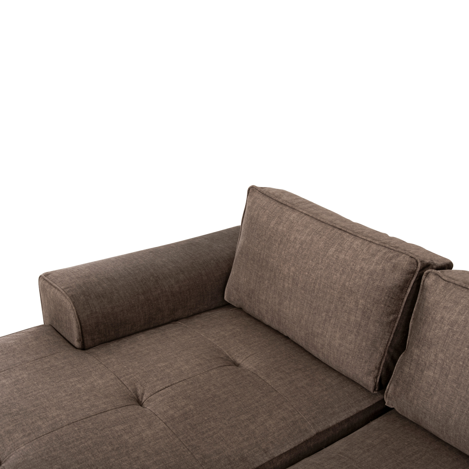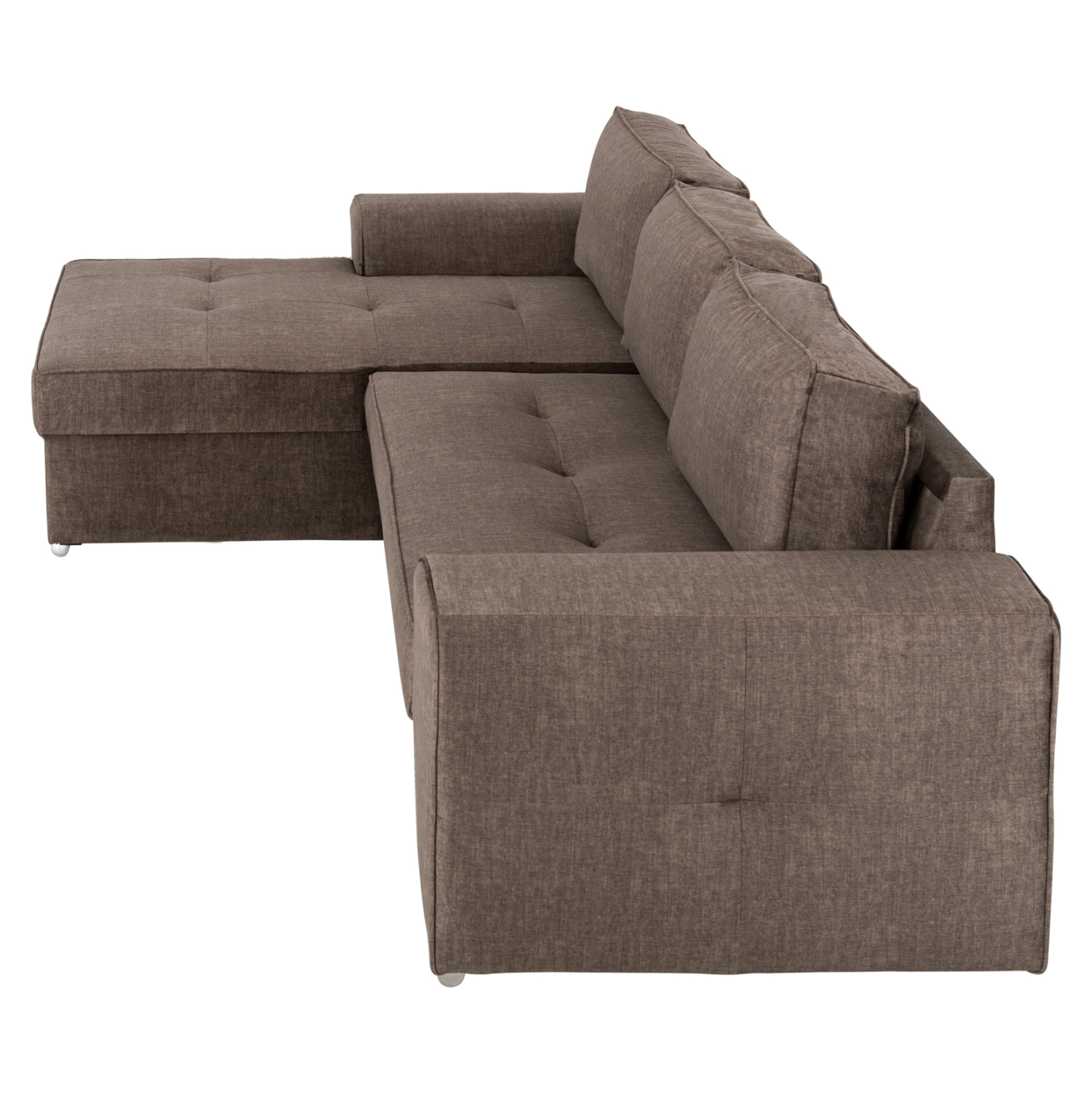 Ο NACHO είναι ένας υπέροχος καινούργιος 3-θέσιος καναπές σε διαμόρφωση ΑΡΙΣΤΕΡΗΣ γωνίας (όπως τον κοιτάς) που θα σας ενθουσιάσει. Είναι πολύ χαμηλός με ασημί φαρδιά μεταλλικά πόδια, που προσφέρουν στιβαρότητα και σωστή στήριξη. Η επένδυση έχει γίνει με όμορφο ύφασμα σε ΚΑΦΕ χρώμα και ελαφρά καπιτονέ τεχνοτροπία, ενώ το κομμάτι που σχηματίζει την γωνία ενώνεται με τον κυρίως καναπέ με κατακόρυφους αναρτήρες πάνελ. Διαθέτει 3 μαξιλάρια πλάτης, ενώ το κάθισμα διαθέτει γεμίσματα αφρού μεσαίας σκληρότητας σε συνδυασμό με οριζόντια (ζιγκ-ζαγκ) ελατήρια προσφέροντας απαράμιλλη άνεση. Τέλος, τα μπράτσα του καναπέ είναι ιδιαιτέρως φαρδιά πράγμα που προσδίδει στιβαρότητα αλλά και πρακτικότητα. Και φυσικά, σας προσφέρουμε αυτόν τον καναπέ με εγγύηση σκελετού 3 ετών!