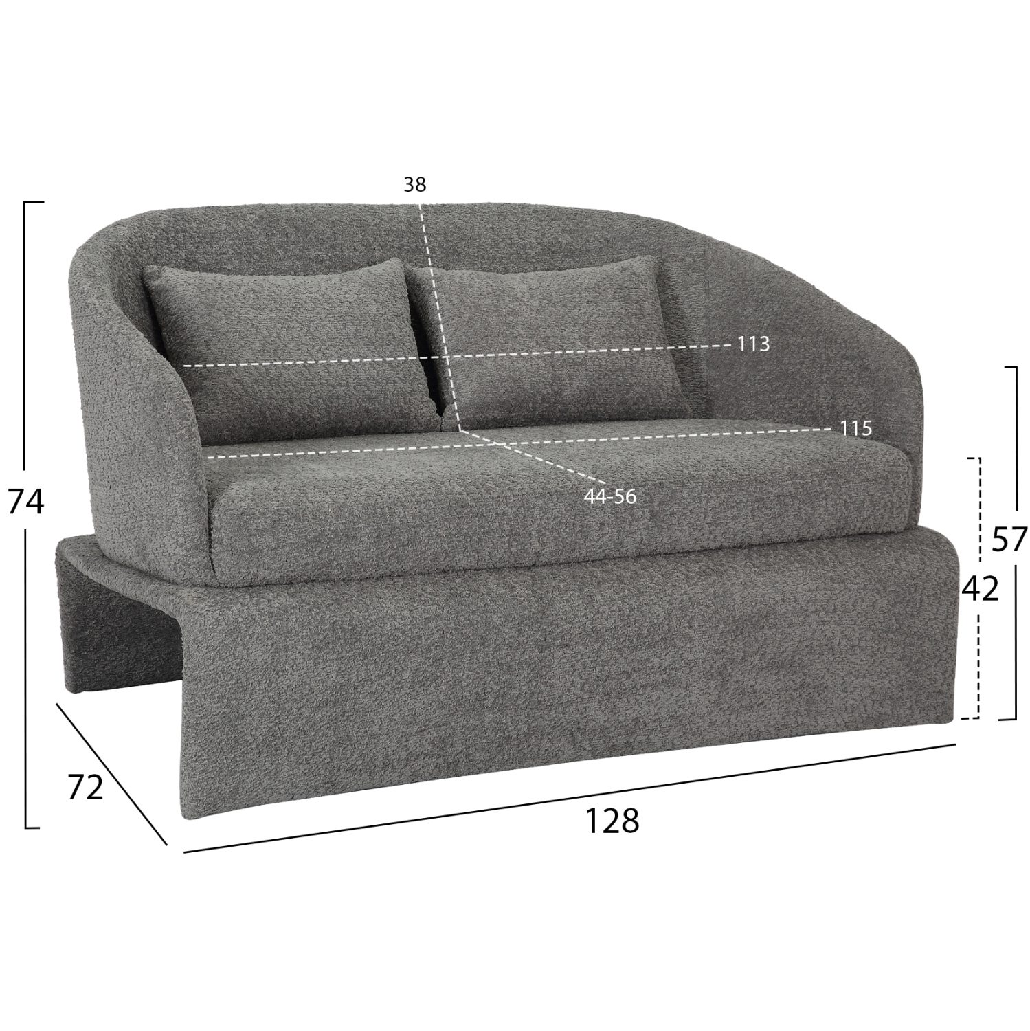 Ο διθέσιος καναπές εσωτερικού χώρου BEVY2 σε ΓΚΡΙ χρώμα είναι μοντέρνος και ξεχωριστός. Το χαρακτηριστικό που τον κάνει να ξεχωρίζει είναι ότι το κάθισμα με την ημικυκλική πλάτη και τα αναπαυτικά μαξιλάρια στηρίζεται σε μια βάση όμοιας αισθητικής. Ένας καναπές που είναι σίγουρο ότι δεν θα περάσει απαρατήρητος.