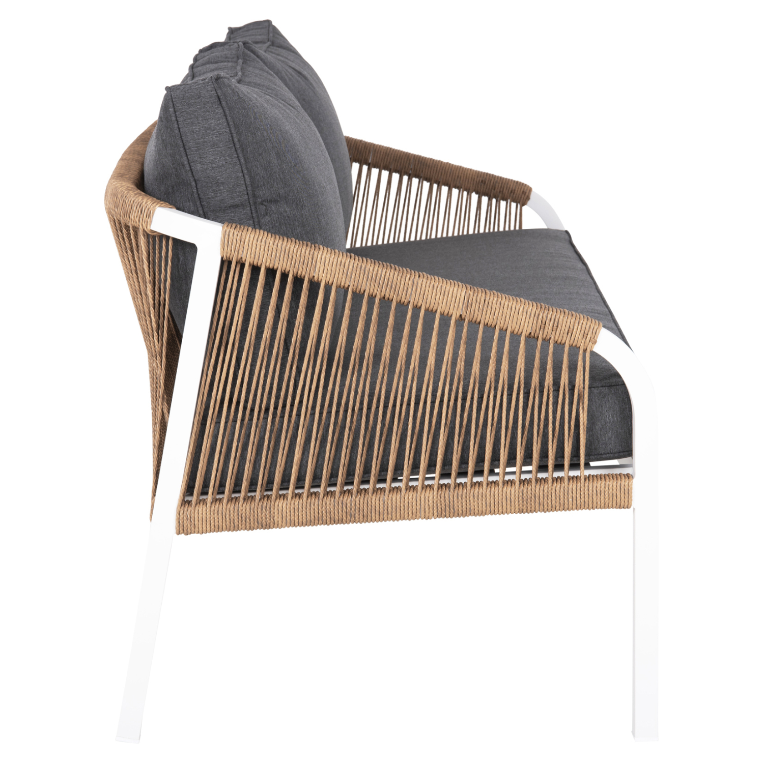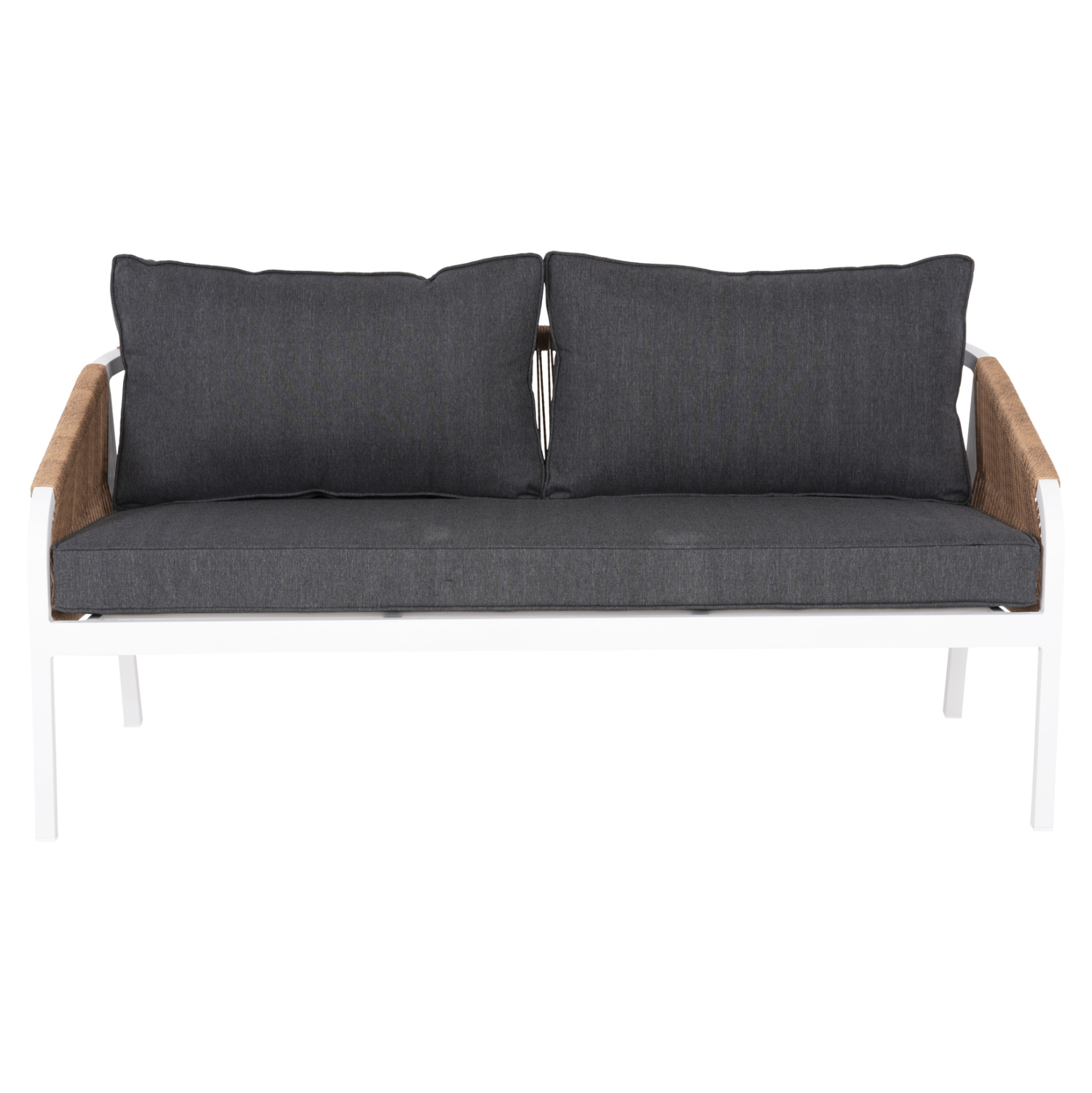 Σας παρουσιάζουμε τον MAERLY, έναν πανέμορφο 3θέσιο καναπέ εξωτερικού χώρου σε συνδυασμό ΛΕΥΚΟΥ-ΑΝΘΡΑΚΙ. Ο συνδυασμός του σκελετού αλουμινίου σε ΛΕΥΚΟ χρώμα με το ΣΚΟΥΡΟ ΜΠΕΖ συνθετικό σχοινί που διατρέχει πλεγμένο όλο τον καναπέ, καθώς και τα 2 μεγάλα μαξιλάρια πλάτης με πολυεστερικό ύφασμα σε ΑΝΘΡΑΚΙ χρώμα είναι μοναδικός, και μπορεί να αλλάξει άμεσα την εικόνα οποιουδήποτε εξωτερικού χώρου. Χαρακτηριστικό γνώρισμα αυτού του καναπέ είναι ότι τα πόδια είναι ψηλά, με αποτέλεσμα και το ύψος του καθίσματος να είναι ψηλό.