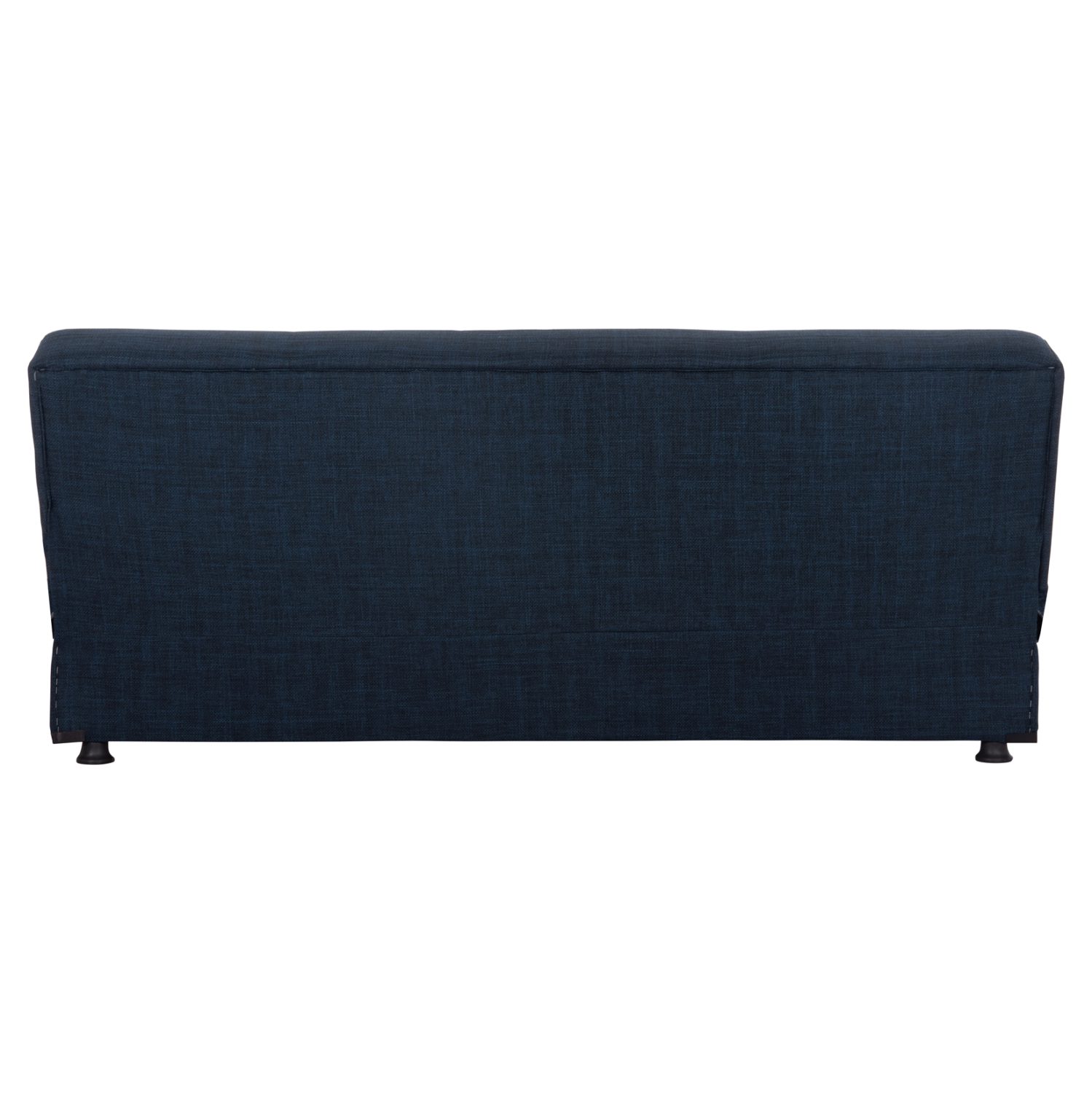 Ξεκινώντας από τα βασικά και τα προφανή, το χρώμα της επένδυσης με το εξαιρετικό και καλοραμμένο ανάγλυφο ύφασμα αυτού του καναπέ, είναι ΜΠΛΕ. Διαθέτει 2 μικρά μακρόστενα μαξιλάρια με το ίδιο ύφασμα που μπορούν να χρησιμοποιηθούν όπως θέλει ο καθένας. Χαρακτηριστικό αυτού του καναπέ είναι ότι δεν διαθέτει μπράτσα με αποτέλεσμα να μην περιορίζει την χρήση του από τους χρήστες του. Επίσης, γίνεται πολύ εύκολα κρεβάτι μέσω ενός εύχρηστου μηχανισμού (κλικ-κλακ) πολλαπλασιάζοντας την χρησιμότητά του. Κάτω από το κάθισμα του καναπέ υπάρχουν 2 αποθηκευτικοί χώροι με ενισχυμένο πάτωμα καθιστώντας τον ένα πραγματικό πολυεργαλείο, ειδικά για φοιτητικά σπίτια αλλά και σπίτια με περιορισμένο γενικά χώρο.