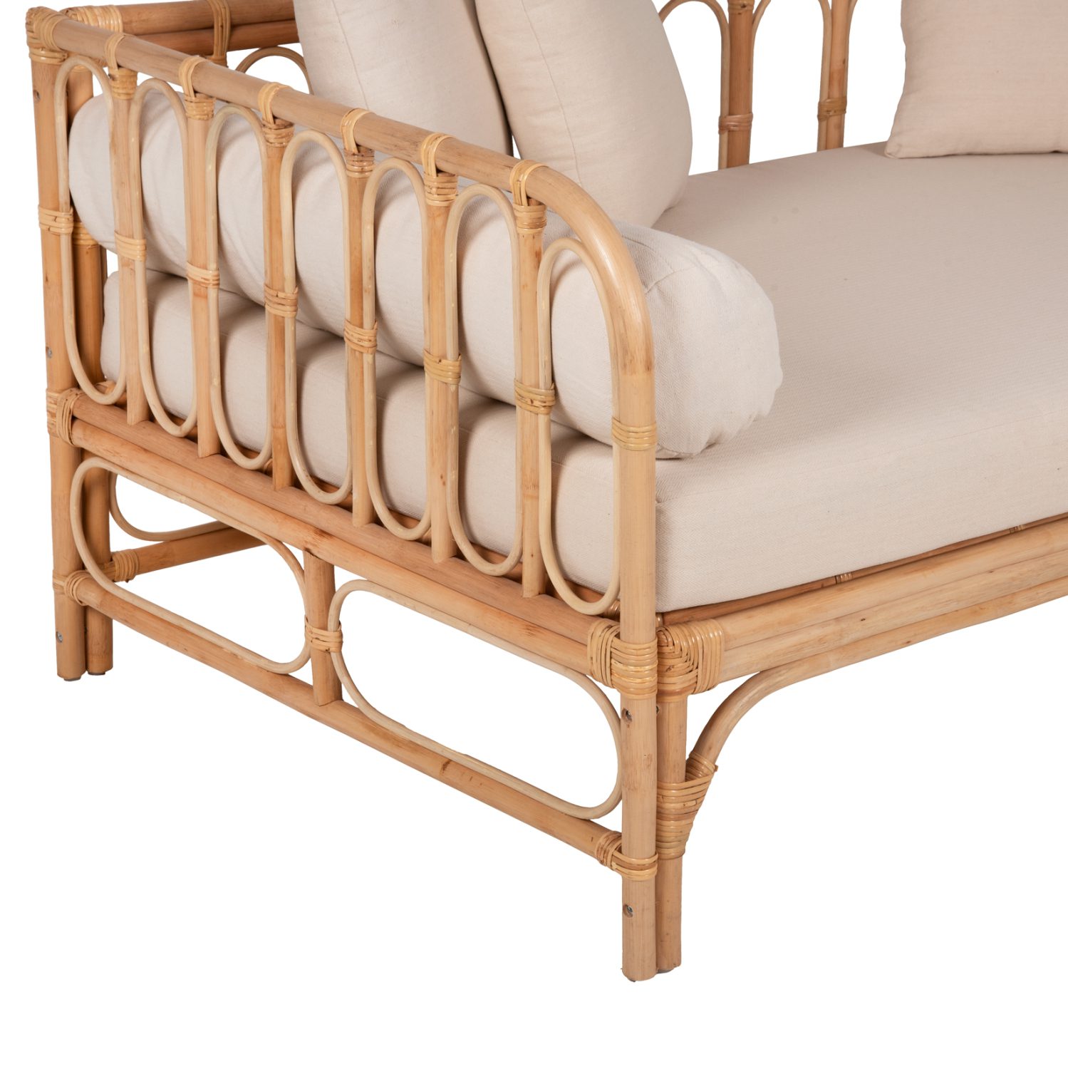 Ο καναπές είναι κατασκευασμένος από φυσικό Rattan. Το Rattan είναι το καλύτερο και το πιο ευρέως χρησιμοποιούμενο φυσικό υλικό για διάφορες κατασκευές. Το Rattan που καλλιεργείται στην Ν.Α. Ασία είναι το ποιοτικότερο και ανθεκτικότερο υλικό από παρόμοια που καλλιεργούνται σε άλλες περιοχές. Με περισσότερα από 600 διαφορετικά είδη, το RATTAN μπορεί να διακριθεί ως ένα ισχυρό ινώδες φυτό που μοιάζει με το μπαμπού και χρησιμοποιείται για ευρέως επειδή είναι ελαφρύ, ανθεκτικό, εύκαμπτο και ελκυστικό.