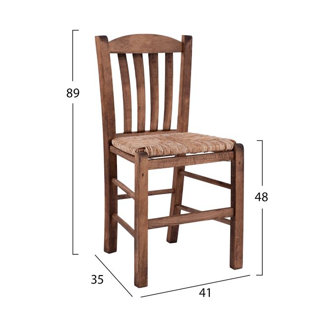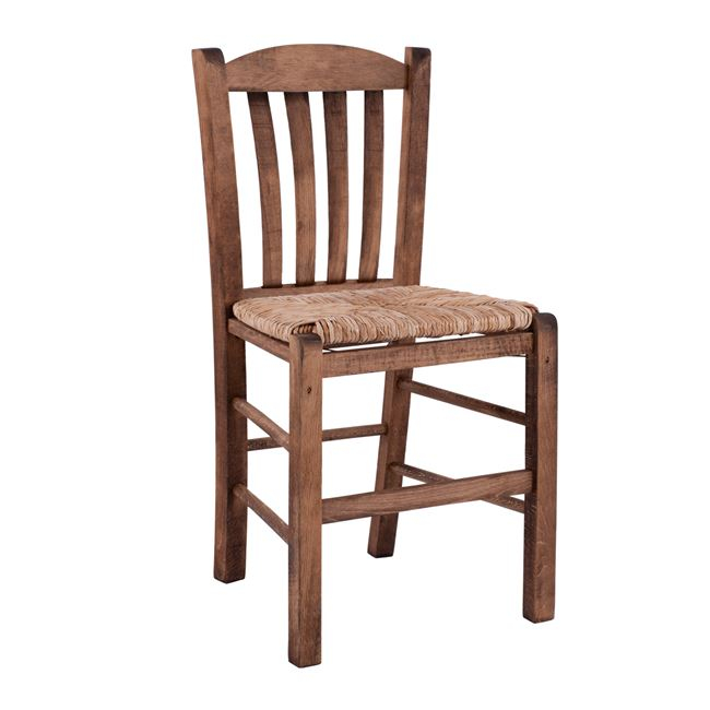 Καρέκλα καφενείου από μασίφ ξύλο φουρνιστής οξιάς εμποτισμού καρυδί και ψάθα.