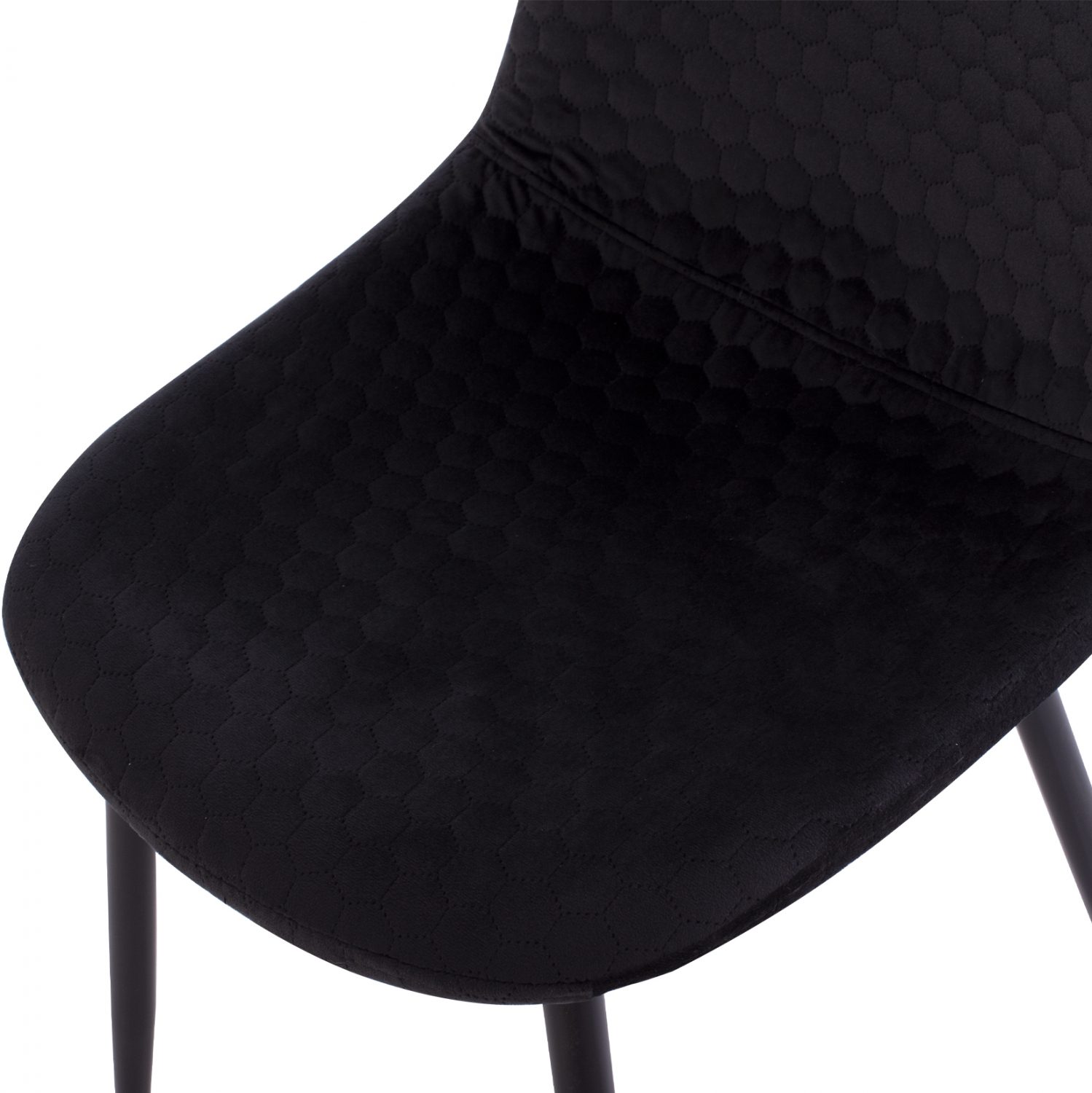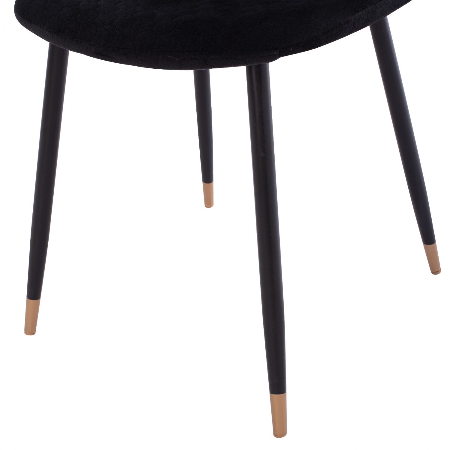 Καρέκλα από βελούδινο ύφασμα σε μαύρη απόχρωση, με μεταλλικό σκελετό σε μαύρη απόχρωση με χρυσές λεπτομέρειες στο τελείωμα των ποδιών 45X56X81Υ εκ.