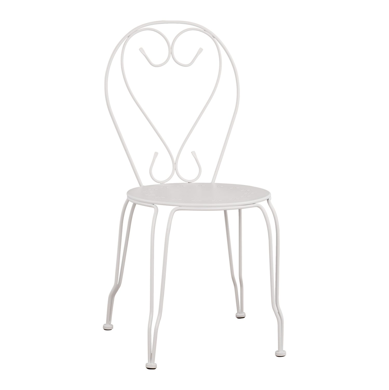 Μεταλλική καρέκλα εξωτερικού χώρου σε λευκή απόχρωση όπου στην βάση υπάρχει σχέδιο με λουλούδια.