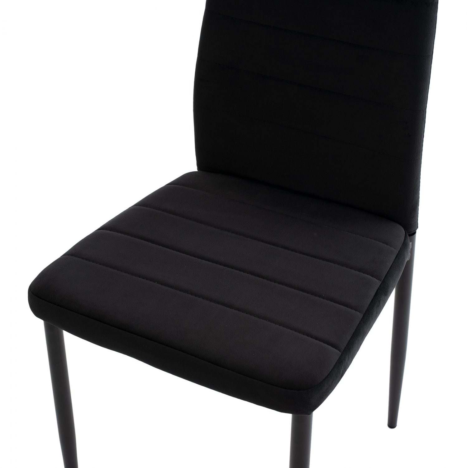 Καρέκλα κουζίνας από σκελετό μεταλλικό K/D μαύρου χρώματος και επένδυση από βελούδινο ύφασμα σε μαύρη απόχρωση.