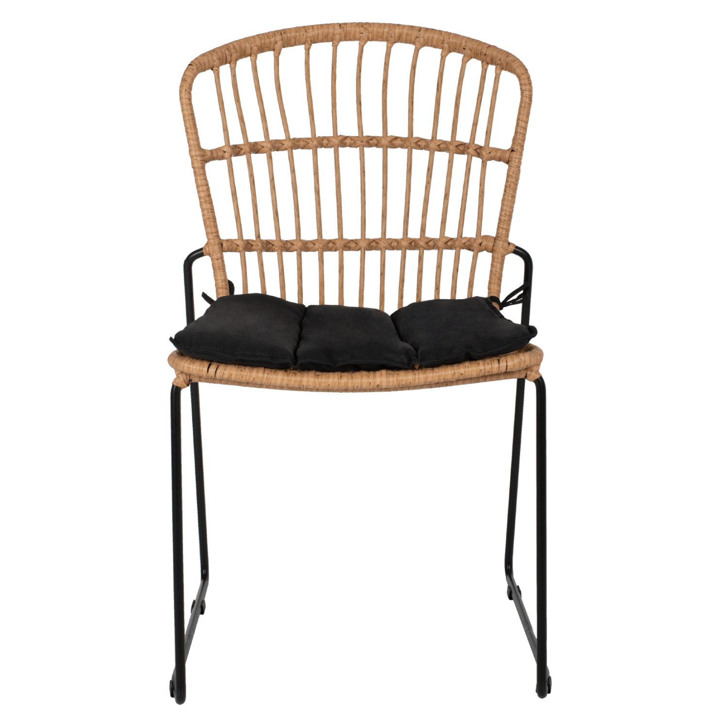 Η καρέκλα ΗΜ5866.01, κυρίως για επαγγελματική χρήση, είναι μοντέρνα, άνετη και σταθερή. Ο καμπυλωτός σχεδιασμός του καθίσματος με την πλέξη wicker του rattan σε φυσικό χρώμα αλλά και των μαύρων μεταλλικών ποδιών που είναι 2 τετράγωνες καμπυλωτές βάσεις, θα αναβαθμίσουν αισθητικά τον χώρο που θα την τοποθετήσετε και θα τραβήξει τα βλέμματα. Επίσης, το μαξιλάρι είναι σε μαύρη απόχρωση όπως και το κάτω μέρος του σκελετού, και δένεται στην καρέκλα με σχοινάκια συμπληρώνοντάς την ιδανικά.