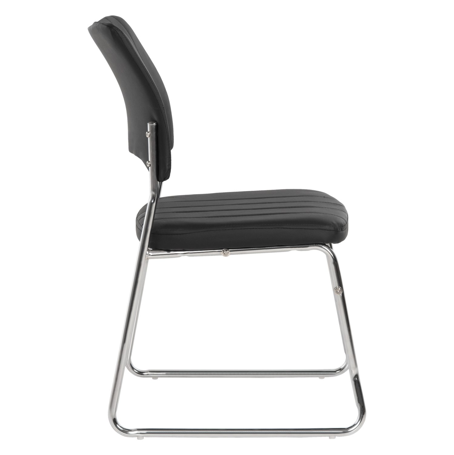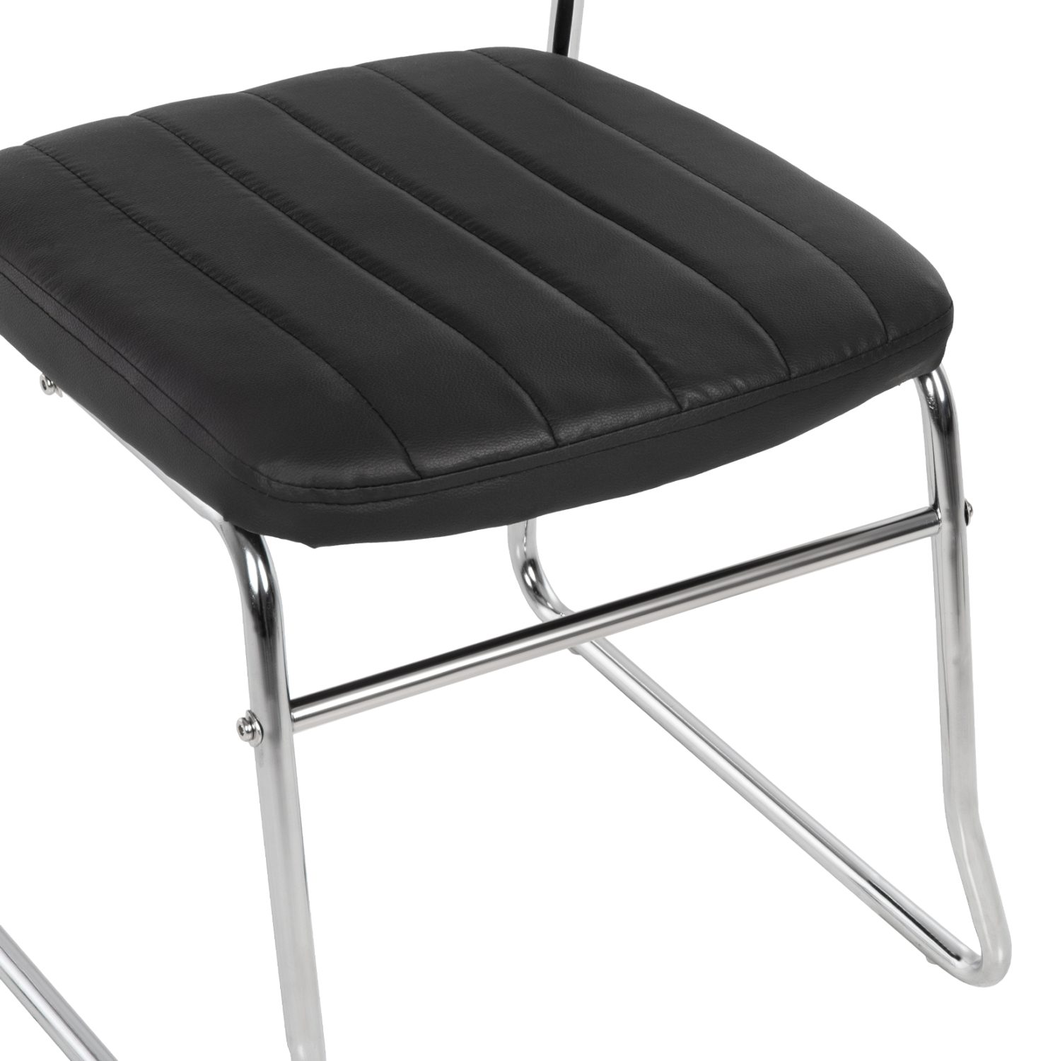 Καρέκλα επισκέπτου, από μαύρο PU και σκελετό από χρωμιομένο ατσάλι για ύψιστη ασφάλεια, σταθερότητα και αντοχή.