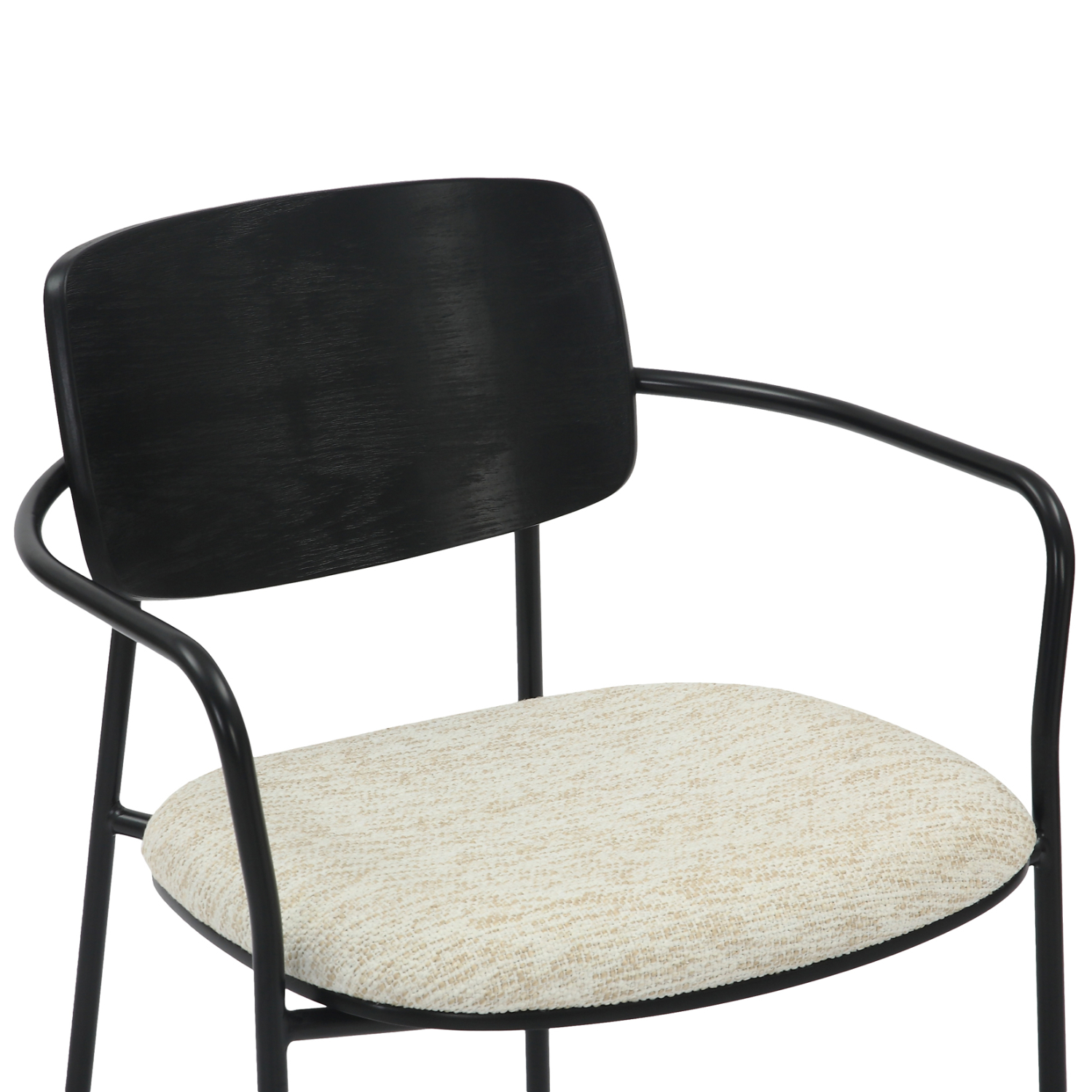 Η καρέκλα τραπεζαρίας VIKKI με τον λιτό σχεδιασμό της ενώνει αρμονικά τον μεταλλικό σκελετό σε ΜΑΥΡΟ χρώμα, με το υψηλής ποιότητας ΕΚΡΟΥ ύφασμα του καθίσματος και την ξύλινη πλάτη σε ΜΑΥΡΟ χρώμα. Συνδυάστε την με ένα ωραίο τραπέζι και δημιουργήστε μια όμορφη και ποιοτική τραπεζαρία.