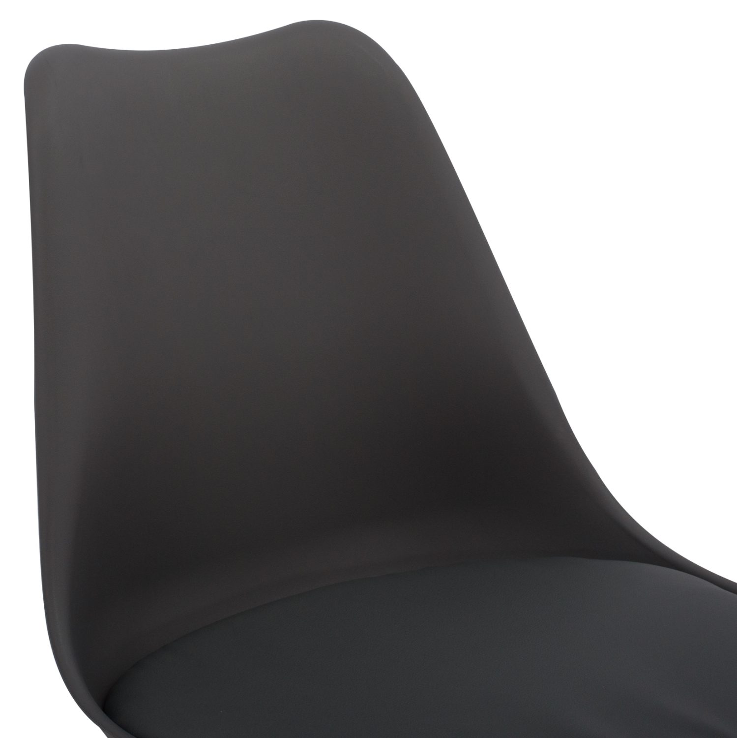 Κάθισμα-Πλάτη: Υψηλής ποιότητας πολυπροπυλένιο με δερμάτινο PU μαξιλαράκι σε σκούρο γκρι χρώμα.