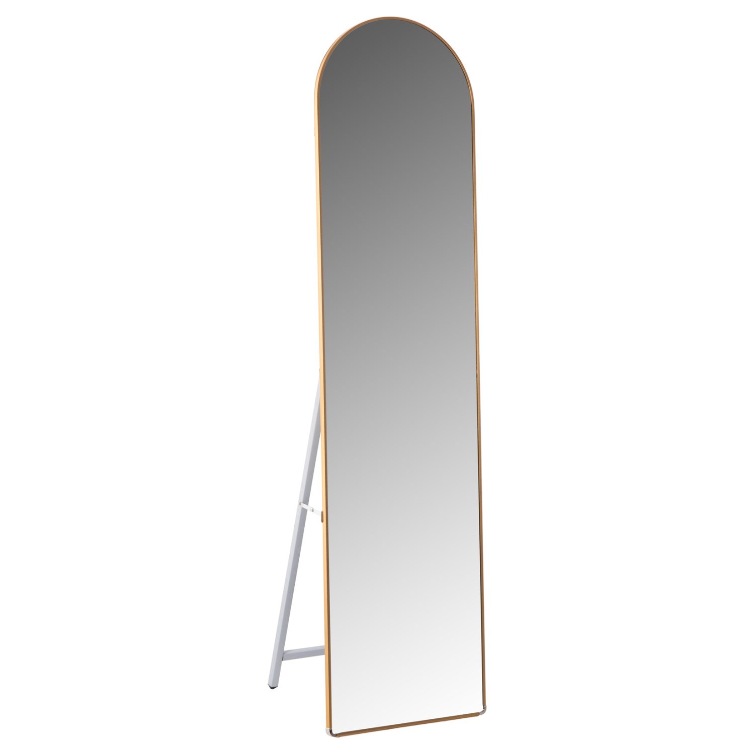 Ο JOELY είναι ένας καθρέφτης δαπέδου σε ΧΡΥΣΗ απόχρωση, κομψός και σε άκρως ικανοποιητική διάσταση. Ένα χρήσιμο «εργαλείο» για κάθε υπνοδωμάτιο που θα ταιριάξει με την διακόσμηση σας, είτε είναι κλασική είτε πιο μοντέρνα. Η στήριξη γίνεται με μια πτυσσόμενη αλουμινένια διάταξη. Ο καθρέφτης στο επάνω μέρος του έχει αψιδωτό σχεδιασμό.