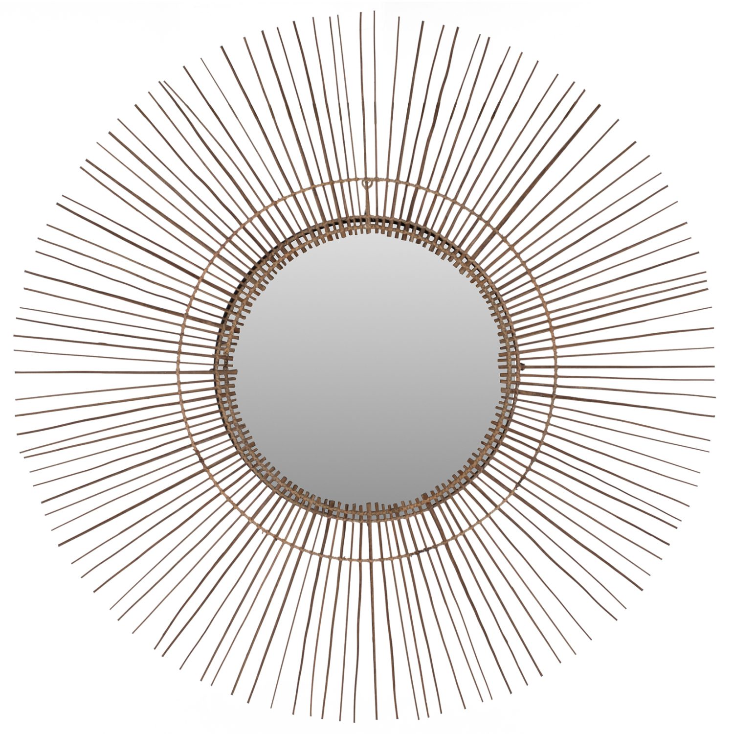 O καθρέπτης ΗΜ7732 είναι πραγματικά ένα εντυπωσιακό κομμάτι στην διακόσμηση του χώρου σας! Το design του είναι μοναδικό με την συμμετρική κυκλική διάταξη των sticks από κοκοφοίνικα, τα οποία στο κέντρο τους «φιλοξενούν» τον καθρέπτη. Τα ξύλα είναι στο φυσικό τους χρώμα και οι διαστάσεις όλης της κατασκευής είναι ικανοποιητικές.