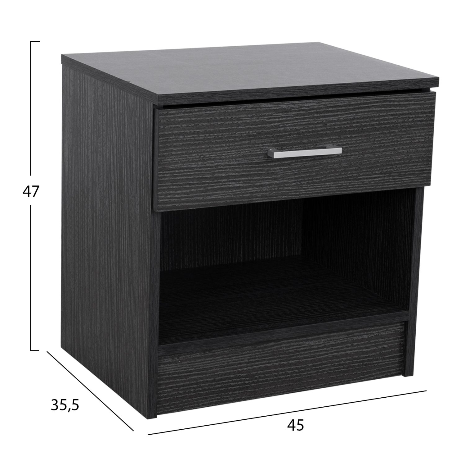 Κομοδίνο μελαμίνης με ένα συρτάρι σε zebrano απόχρωση.