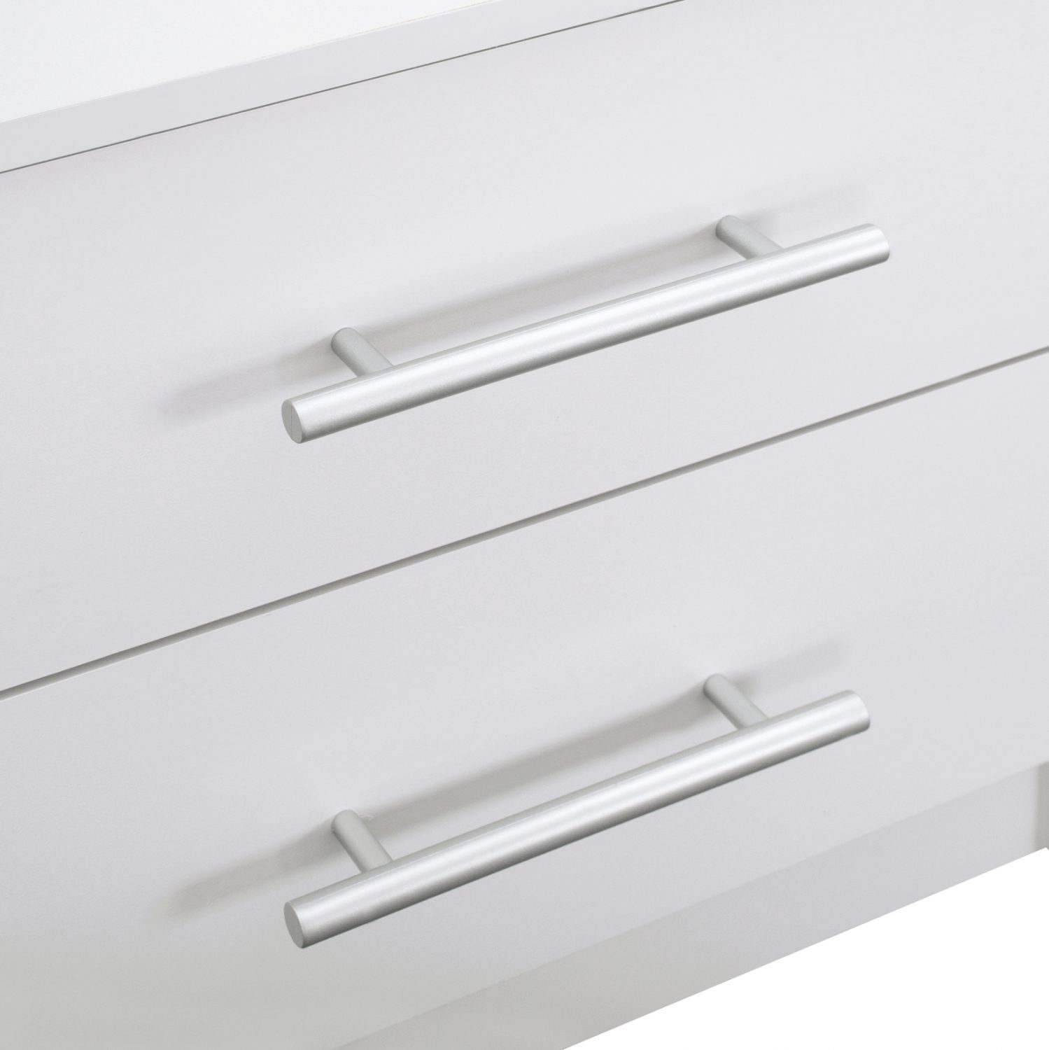 Κομοδίνο μελαμίνης με δύο συρτάρια σε λευκή απόχρωση.
