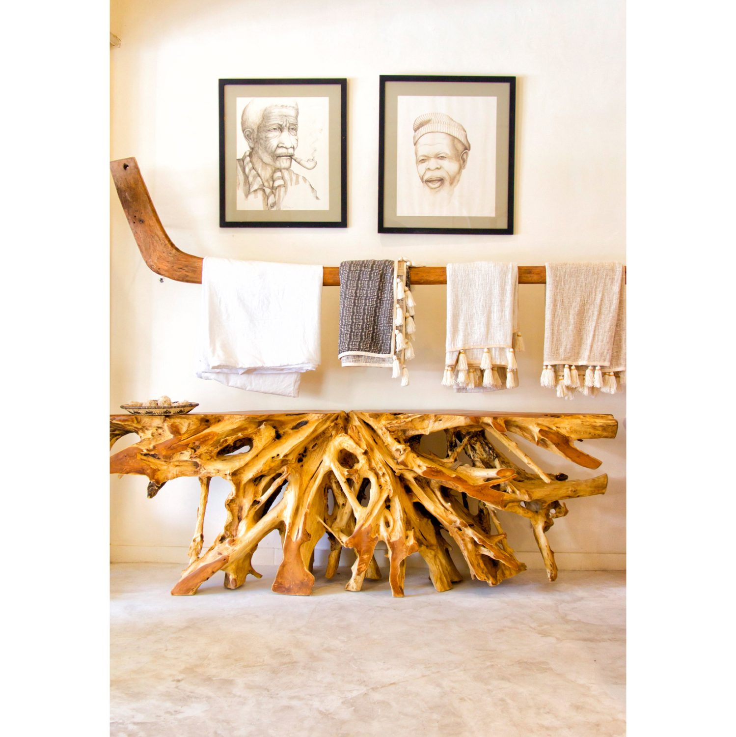 HM9369—Κονσόλα σε ακανόνιστο μακρόστενο σχήμα επιφάνειας. Το εντυπωσιακό σε αυτή την κονσόλα είναι ότι αντί για παραδοσιακά πόδια στηρίζεται σε ένα κομμάτι από την κανονική ρίζα του δέντρου. Το αισθητικό αποτέλεσμα είναι όμορφο και είναι αναπόφευκτο να τραβήξει την προσοχή όλων, σε οποιοδήποτε χώρο κι αν τοποθετηθεί! Αποτελεί την επιτομή της ρουστίκ διακόσμησης για τον χώρο που επιθυμείτε. Τι είναι όμως η κονσόλα; Η κονσόλα είναι ένα κομψό, γραφικό, συμπαγές έπιπλο που μπορεί να τοποθετηθεί σε σχεδόν οποιοδήποτε δωμάτιο- κουζίνα, διάδρομο, κρεβατοκάμαρα, παιδικό δωμάτιο, σαλόνι, dressing room, γραφείο, ακόμα και στο μπάνιο. Με αυτό, ο σχεδιασμός του χώρου γίνεται εκλεπτυσμένος, κομψός, πλήρως σκεπτόμενος. Η κονσόλα στο εσωτερικό χρησιμοποιείται τόσο ως μέρος ενός σετ με πολλά στοιχεία, όσο και ανεξάρτητα και επιλέγεται για τον γενικό σχεδιασμό του δωματίου.