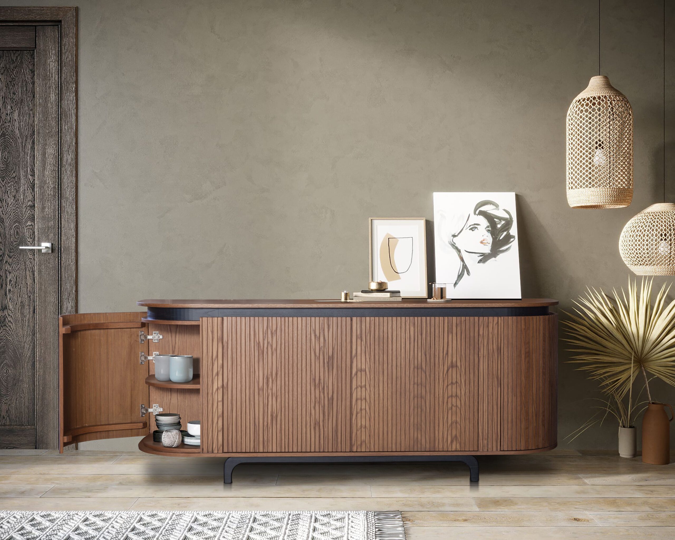 Έπιπλο από ξύλο δρυς ρουστίκ και λάκα, με επιλογή απόχρωσης για μοναδικό στυλ. Διαθέτει ντουλάπια με μηχανισμό push υψηλής ποιότητας και άνετους αποθηκευτικούς χώρους, ενώ οι διαστάσεις μπορούν να προσαρμοστούν στις ανάγκες του χώρου σας.