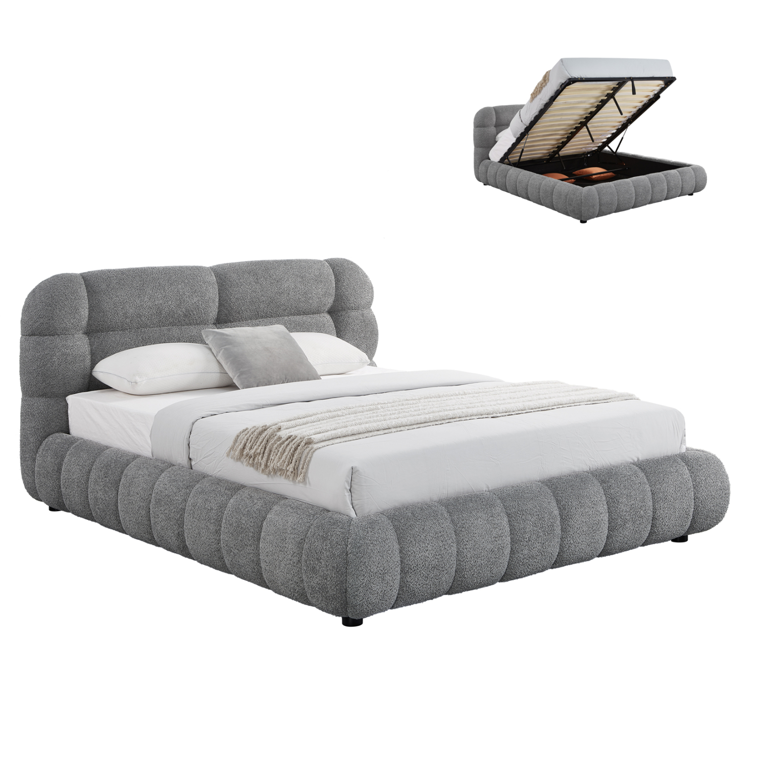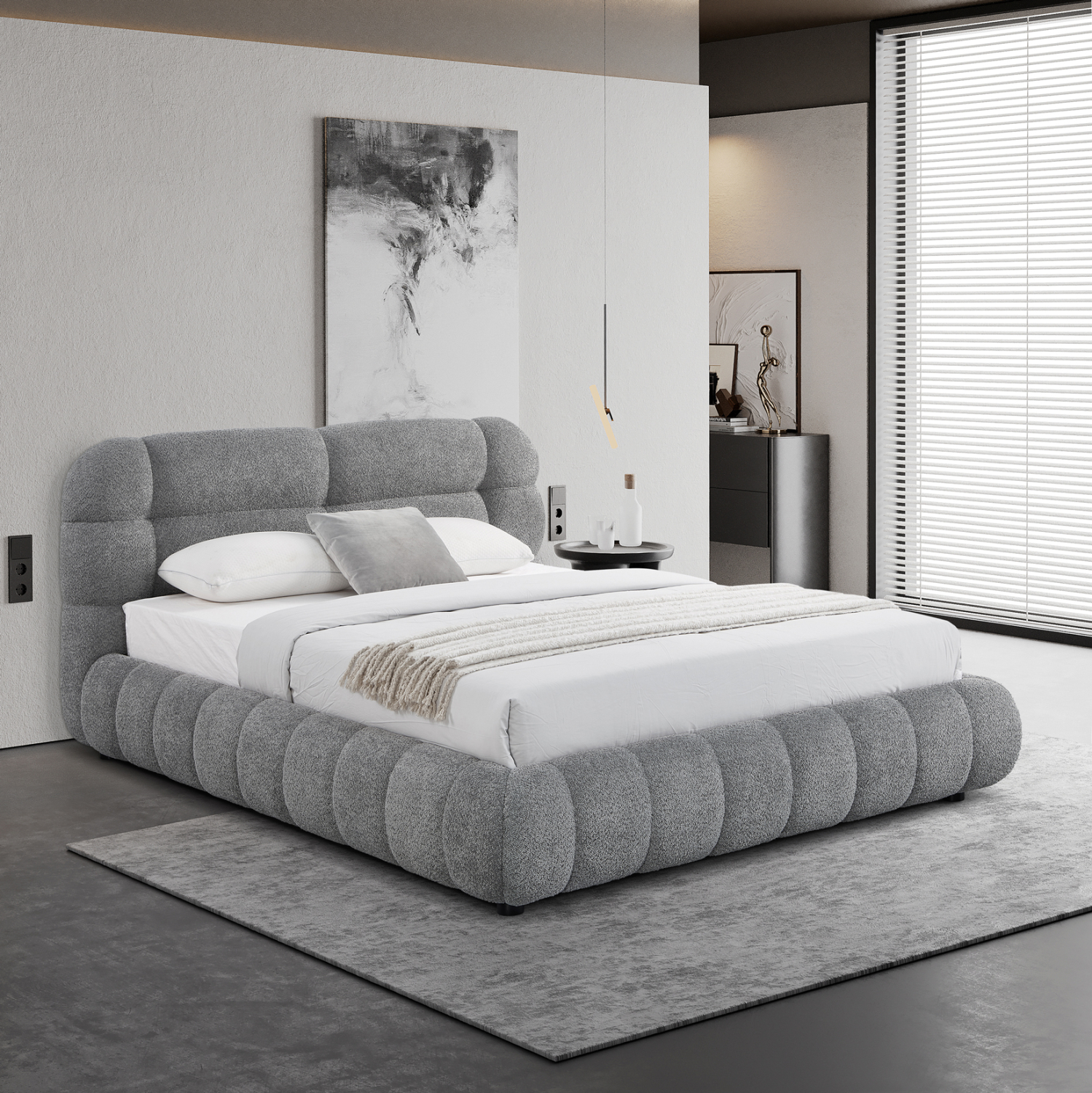 Το διπλό κρεβάτι MOLEN για στρώμα 160×200εκ είναι νέα προσθήκη στην γκάμα μας. Ξεχωρίζει για την όμορφη και «ζεστή» επένδυση με μπουκλέ ύφασμα με καπιτονέ τεχνοτροπία σε όμορφο ΓΚΡΙ χρώμα.