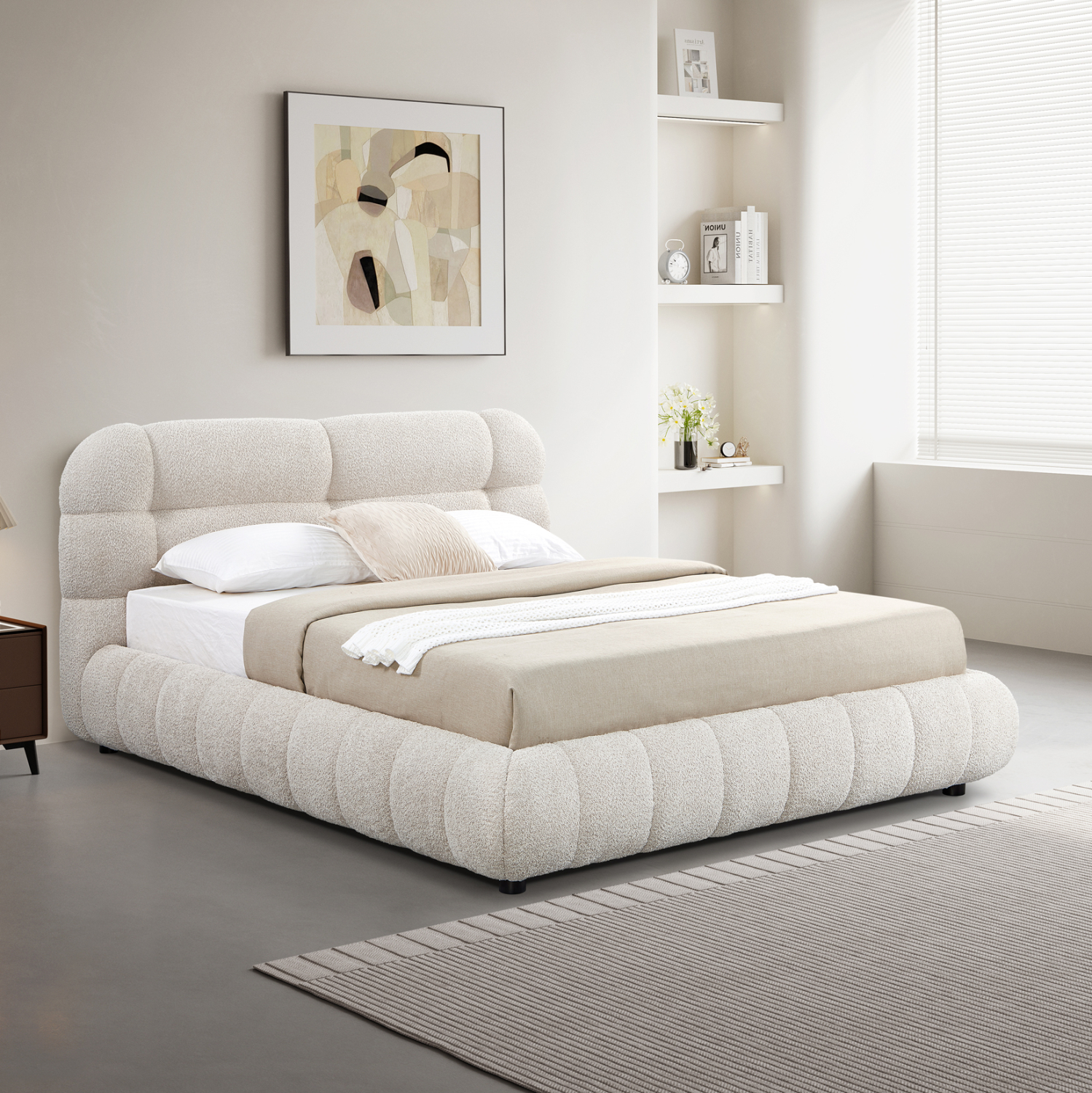 Το διπλό κρεβάτι MOLEN για στρώμα 160×200εκ είναι νέα προσθήκη στην γκάμα μας. Ξεχωρίζει για την όμορφη και «ζεστή» επένδυση με μπουκλέ ύφασμα με καπιτονέ τεχνοτροπία σε όμορφο ΜΠΕΖ χρώμα.