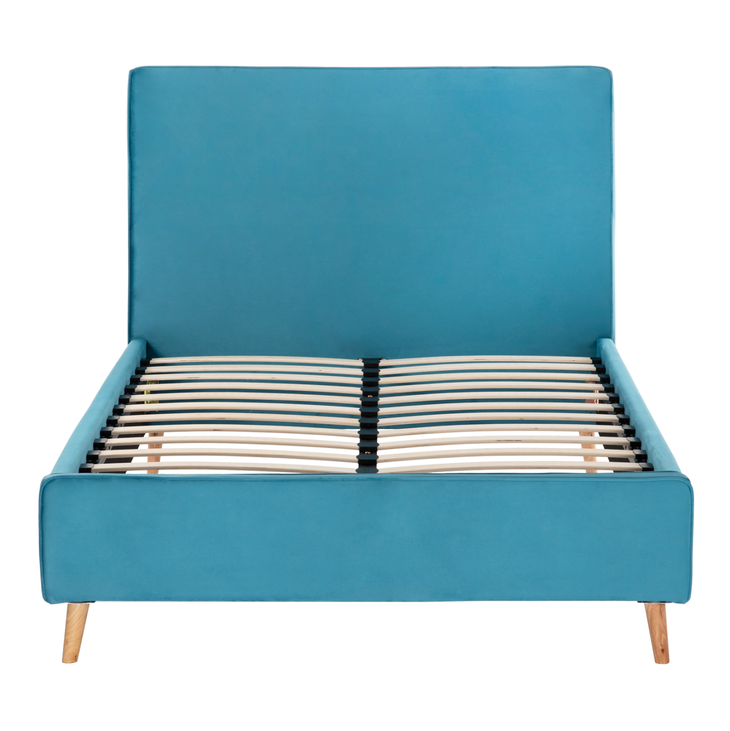 Το ημίδιπλο κρεβάτι MAYLIN είναι επενδυμένο με βελούδο σε χρώμα ΤΙΡΚΟΥΑΖ. Το στρώμα (διατίθεται σε ROLL-PACKING*) που συνοδεύει το κρεβάτι τοποθετείται σε δύο σειρές ανατομικές τάβλες, είναι διπλής όψης και είναι ΑΦΡΟΥ χωρίς ελατήρια. Τα πόδια είναι ξύλινα σε φυσικό χρώμα.