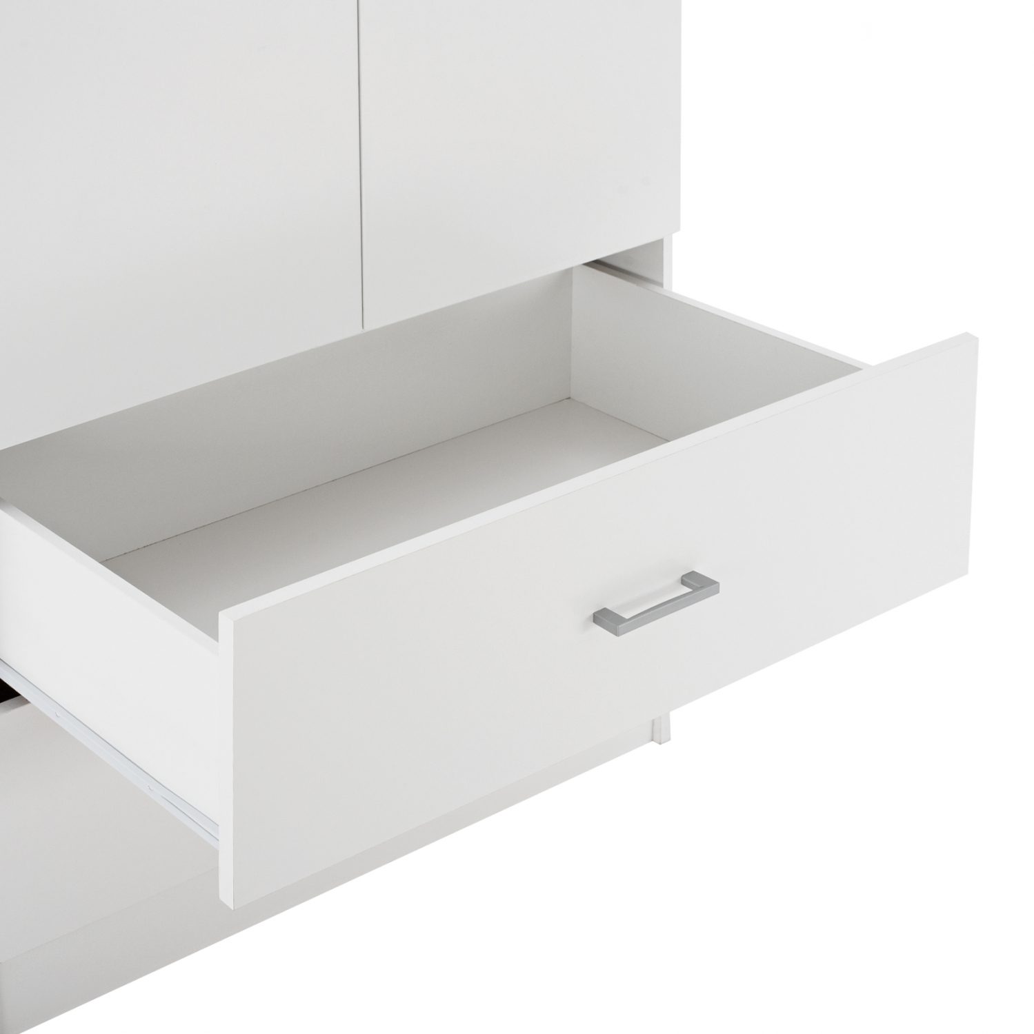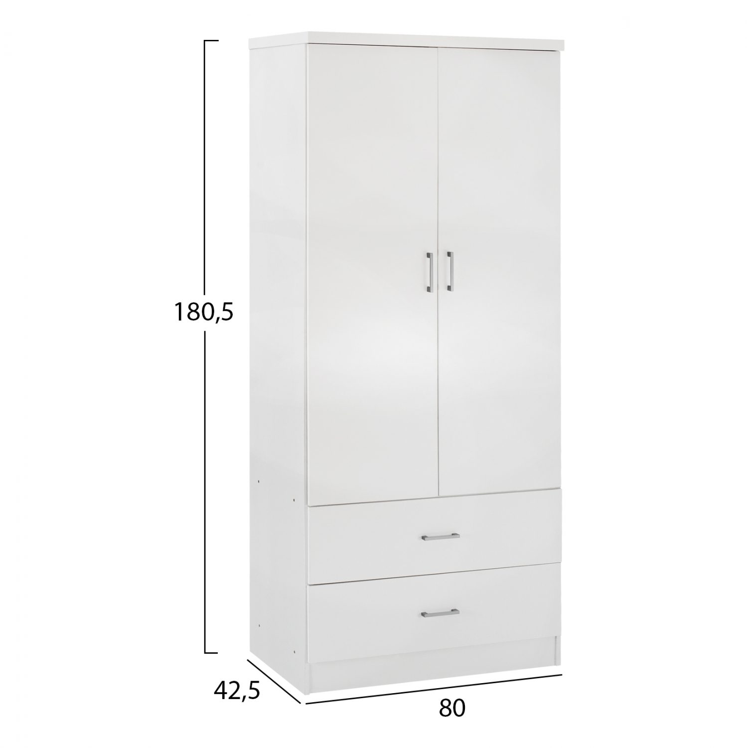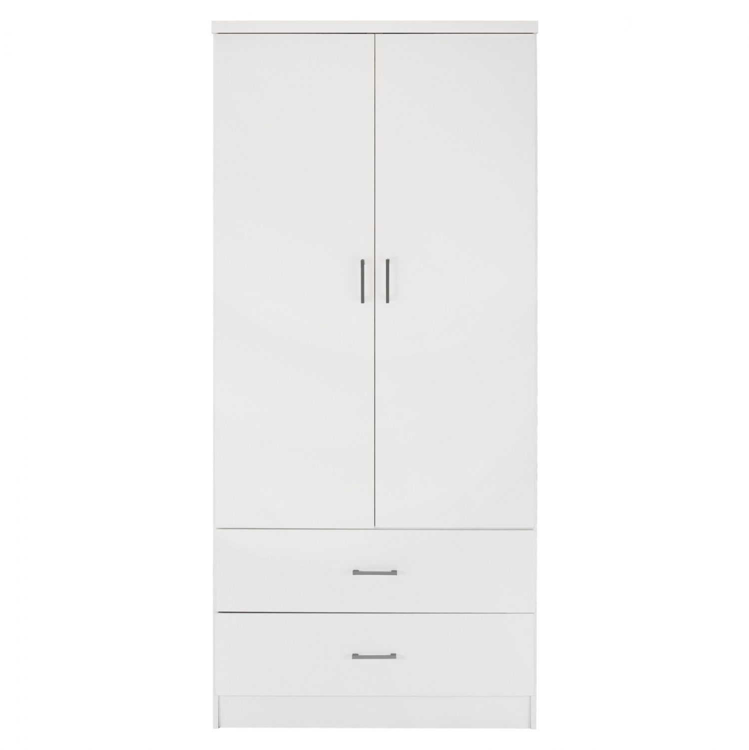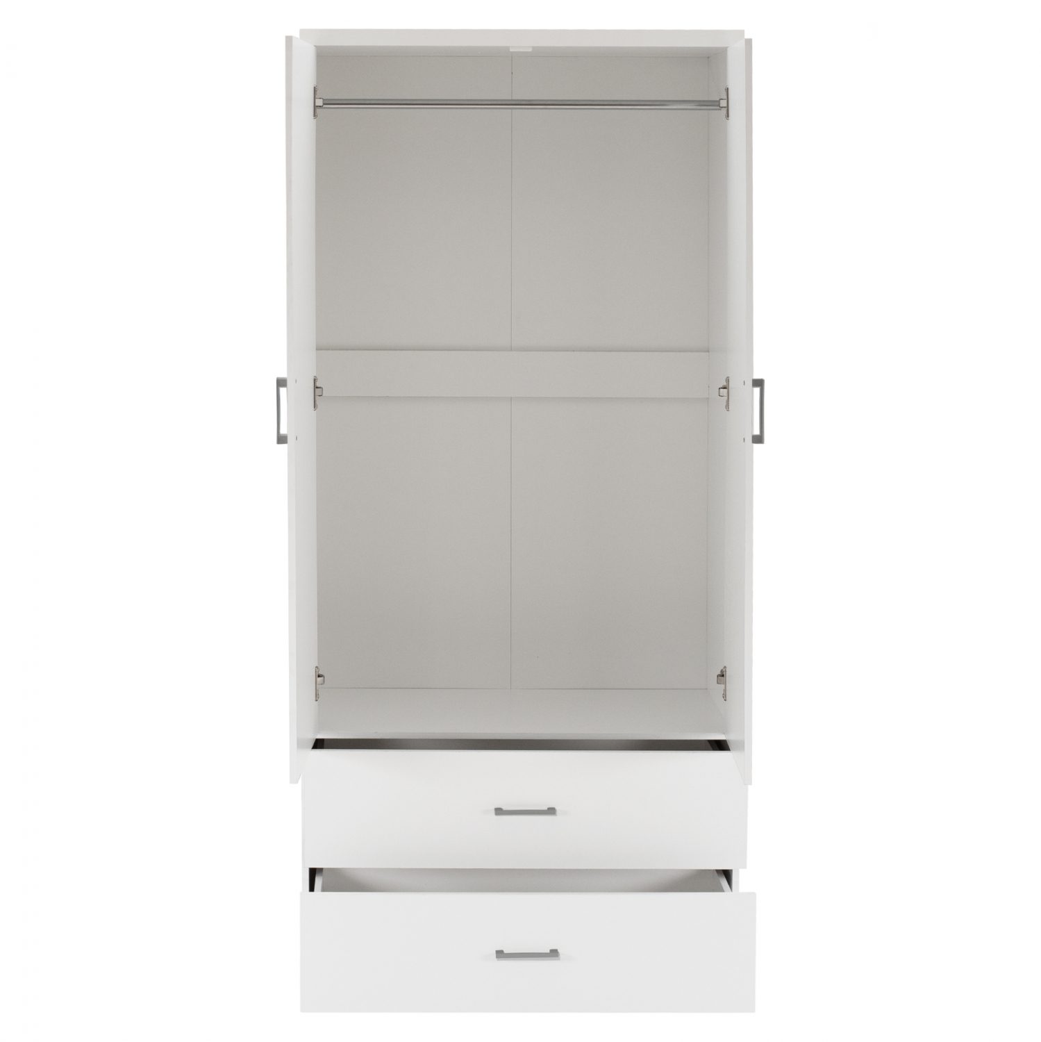Ντουλάπα μελαμίνης δίφυλλη με δύο συρτάρια σε λευκή απόχρωση.