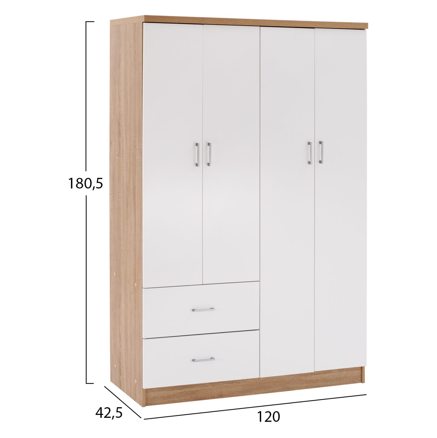 Ντουλάπα μελαμίνης τετράφυλλη σε sonama και λευκή απόχρωση.