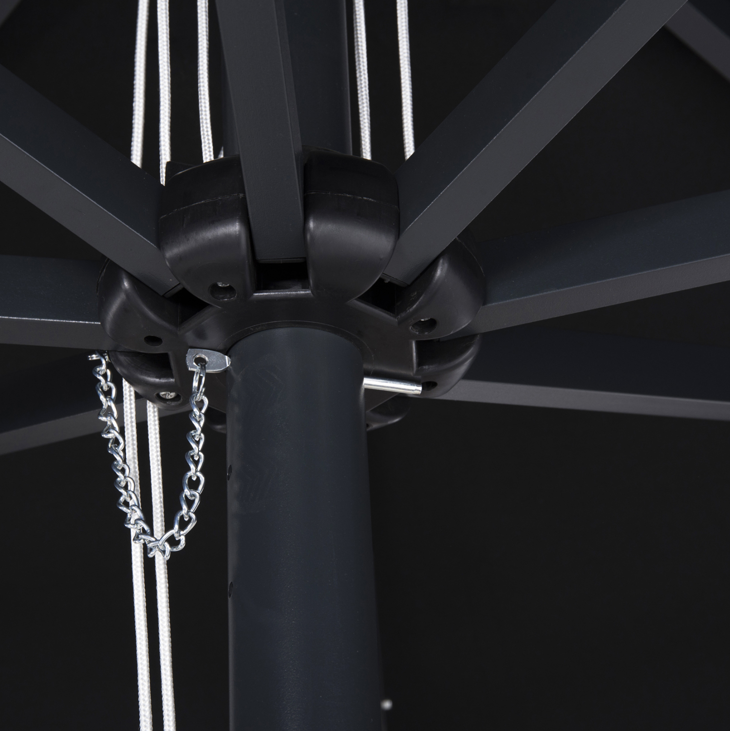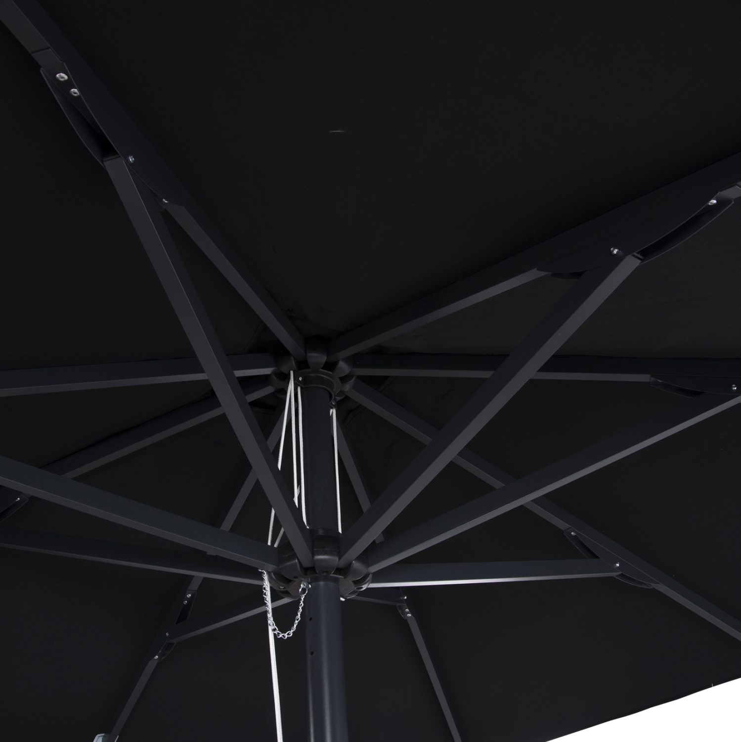 Επαγγελματική ομπρέλα αλουμινίου τετράγωνη 220×220 εκ. με ακρυλικό πανί σε μαύρη απόχρωση.