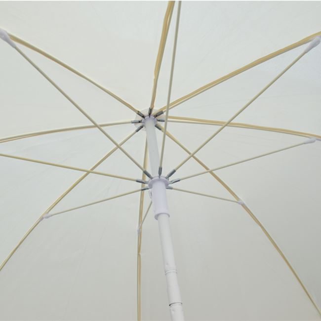 Ομπρέλα θαλάσσης στρογγυλή με ανάκληση και flaps, σε λευκό χρώμα με διάμετρο 2.20 μέτρα και διαιρούμενο σωλήνα Φ25/22mm, με 8 ακτίνες Fiberglass πάχους 5mm.