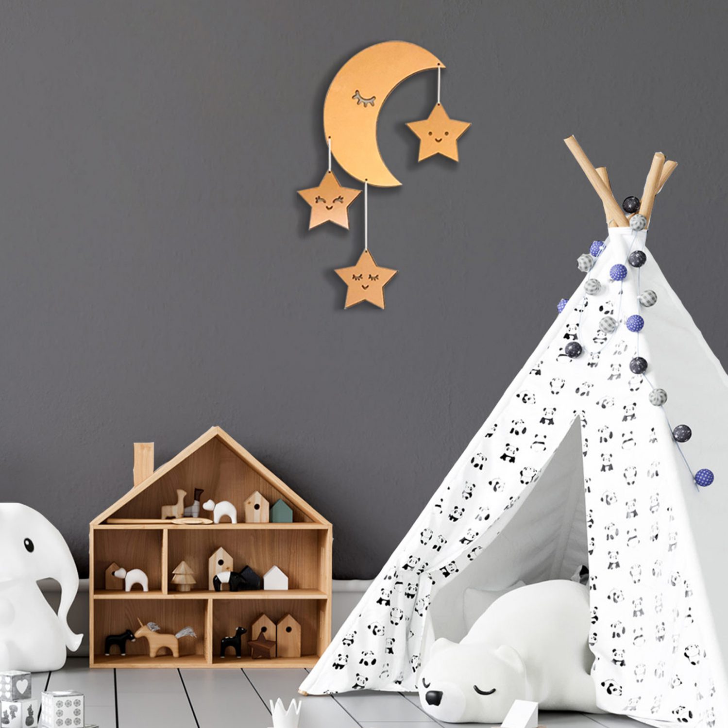 Παιδικό διακοσμητικό τοίχου σε σχήμα Φεγγάρι με αστεράκια.
